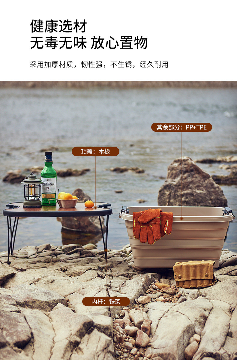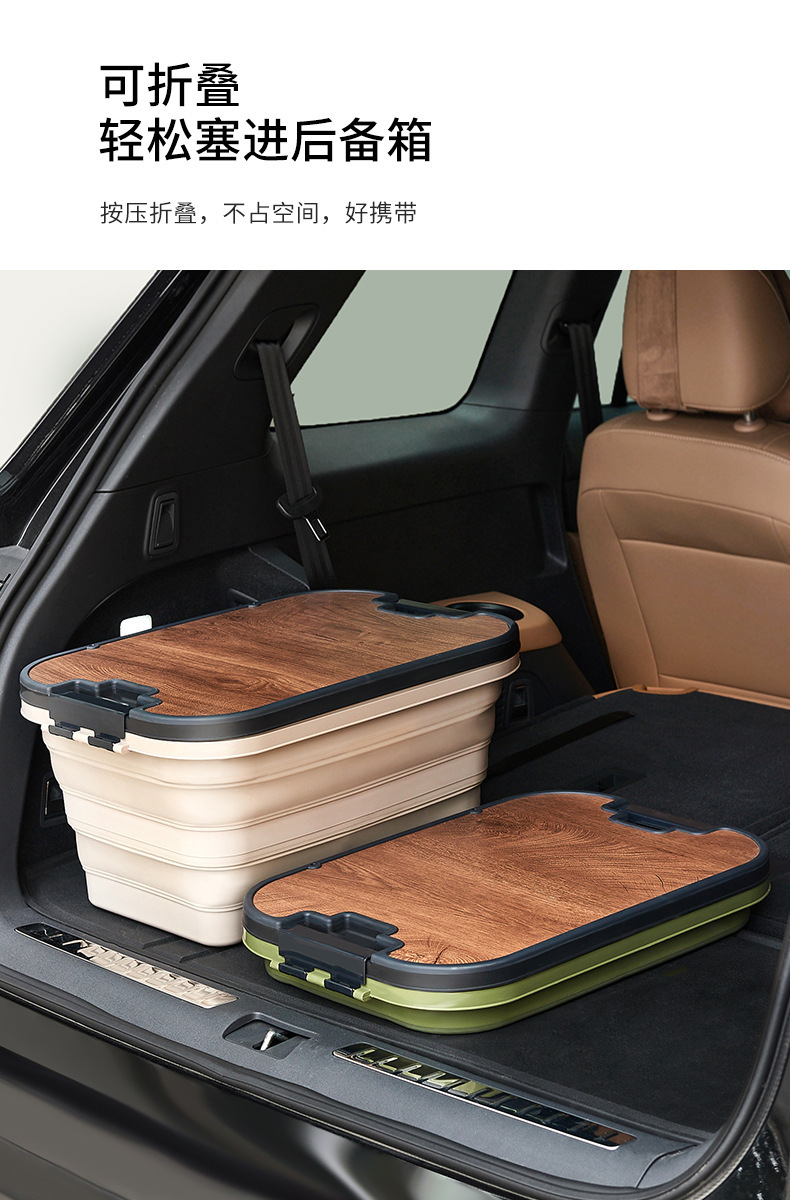 Caja plegable al aire libre Cesta de picnic Caja de almacenamiento Caja de almacenamiento Cubierta de madera engrosada Caja de almacenamiento de coche de camping multifuncional al aire libre