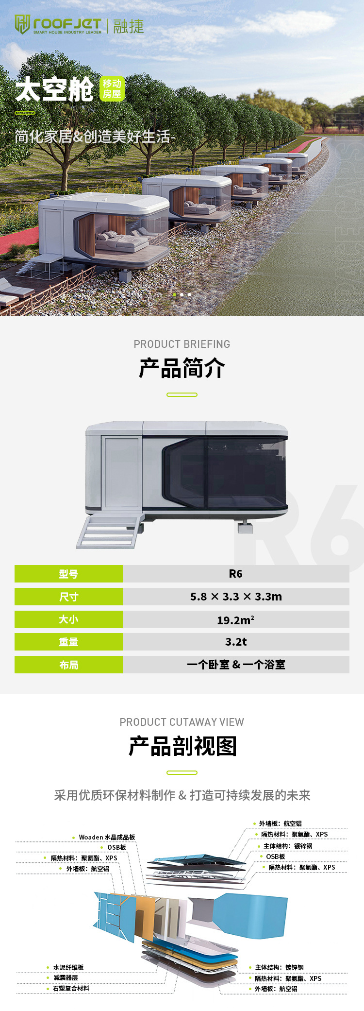 | Especificaciones | Cápsula espacial R6(1 ㎡) |