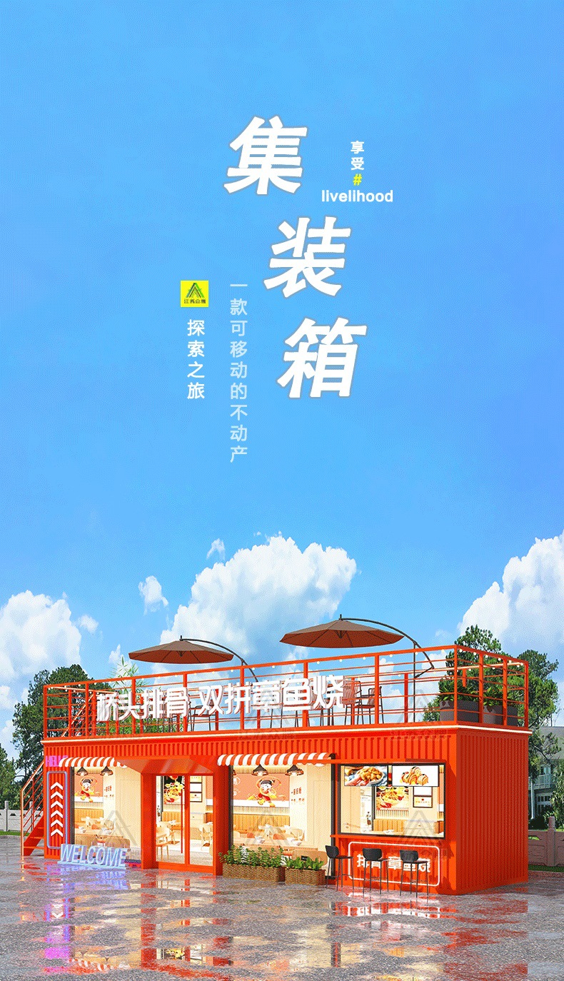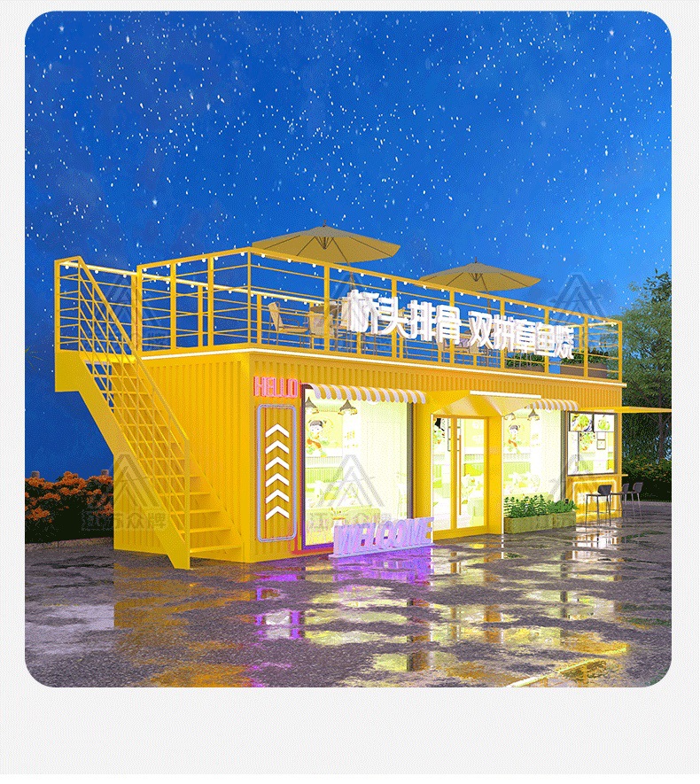 Quiosco móvil escénico, quiosco de contenedores, calle comercial, café, té con leche, mercado nocturno, calle de bocadillos, puesto
