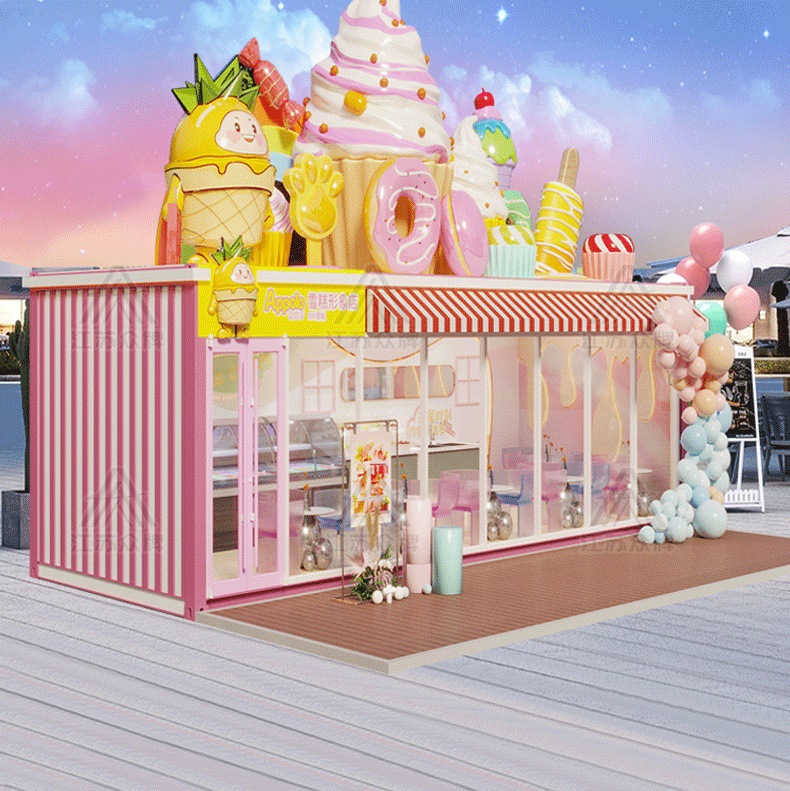 Contenedor Mobile House Network Tienda de té con leche roja Tienda móvil Tienda de contenedores Tienda de postres Café Tienda de helados