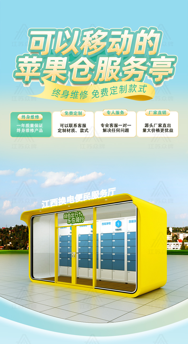 Apple Warehouse producto terminado Smart Station Commercial Street Intercambio de energía comercial Convenience Lounge Scenic Spot Creative Mobile Quiosco