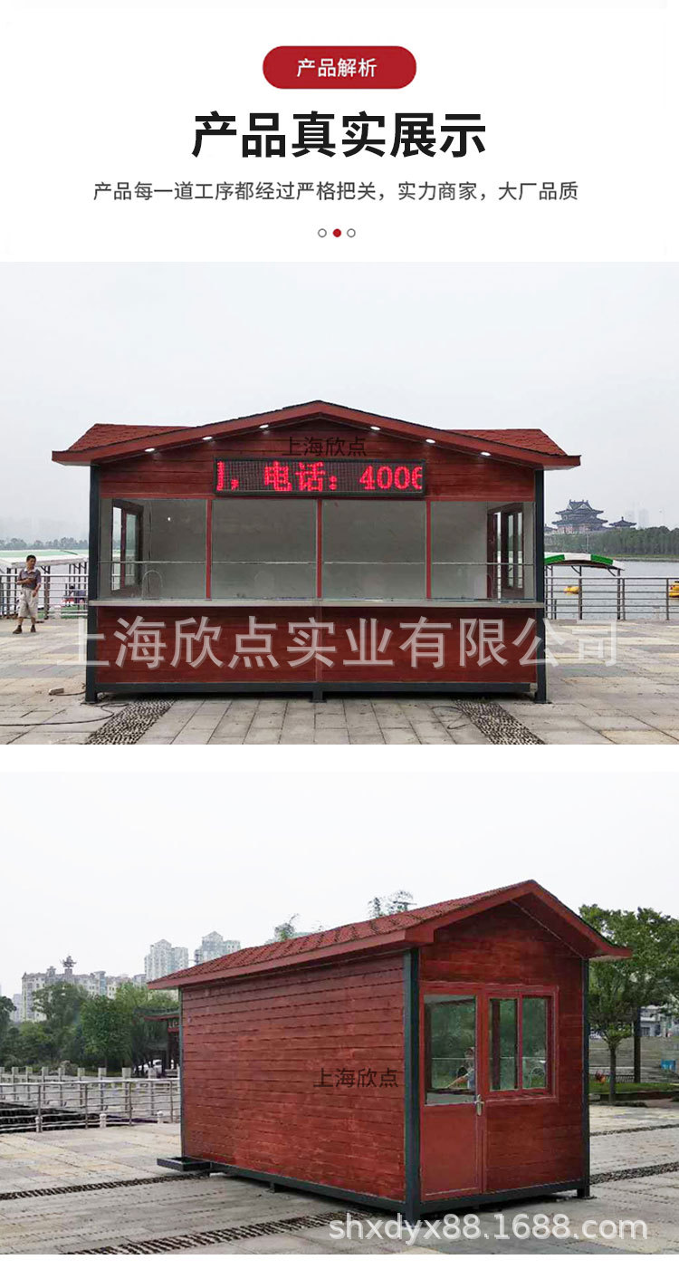 Cabaña de madera anticorrosiva al aire libre, quiosco, calle comercial, plaza, quiosco móvil, taquillas escénicas, casa de té con leche