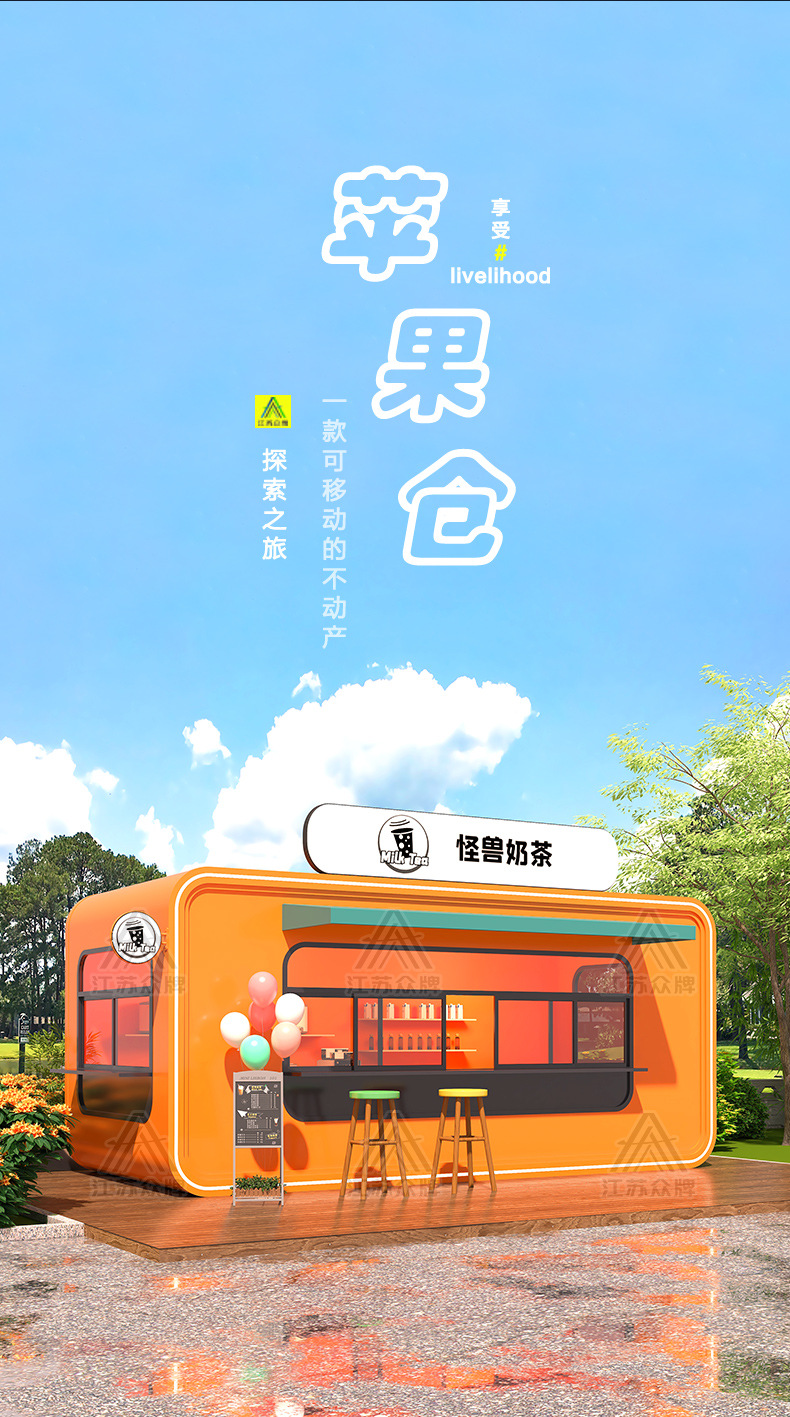 Quiosco de cabina de manzana, sala móvil, tienda de té con leche, snack bar, tienda de contenedores, quiosco, restaurante, cafetería