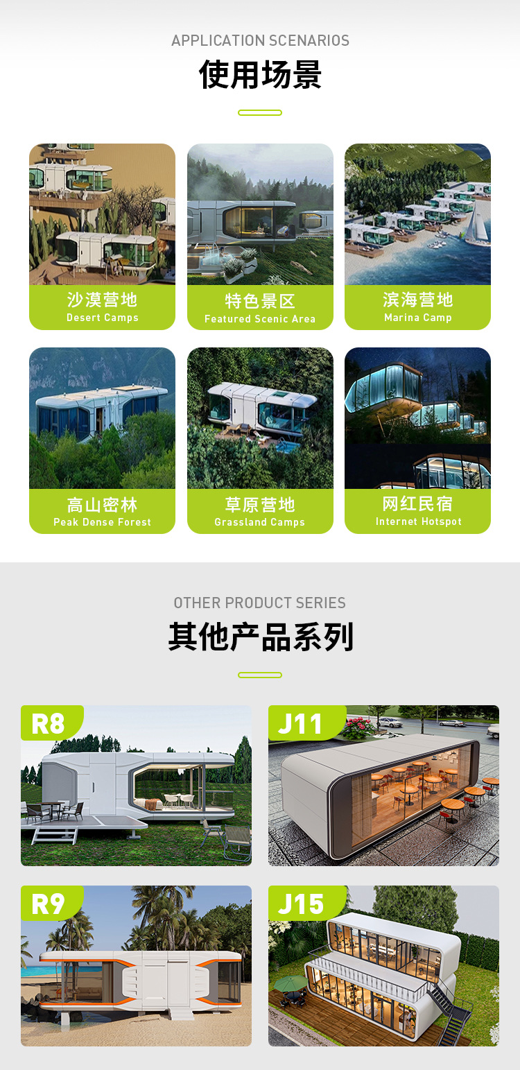 Rongjie contenedor habitación viaje al aire libre B & B casa diferencia escénica casa camping estilo cápsula casa cápsula espacial fábrica extraíble