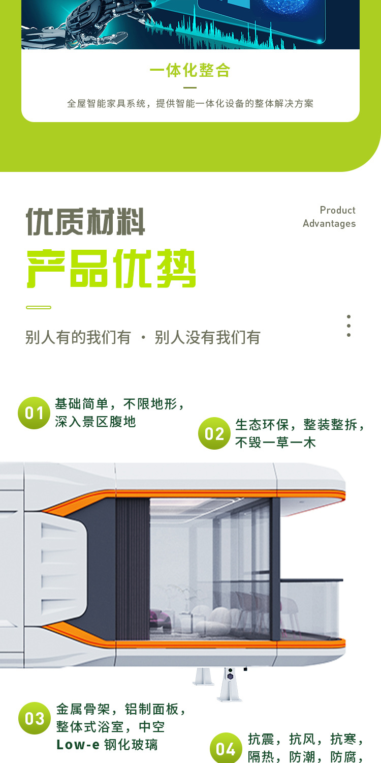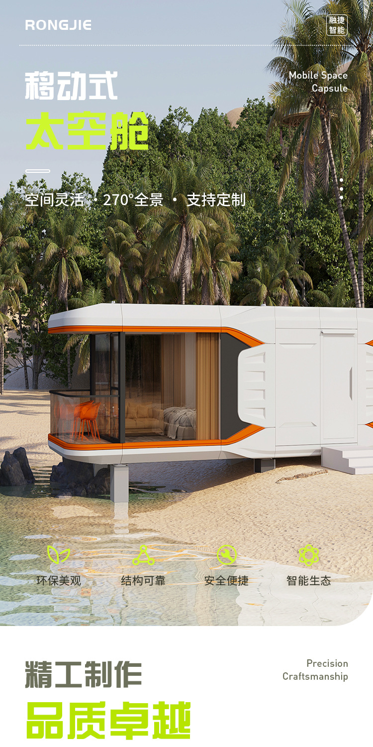 Cápsula espacial Rongjie, casa móvil, casa de huéspedes, habitación con vista a cielo estrellado, solárium, casa inteligente, contenedor tipo cápsula, casa completa.