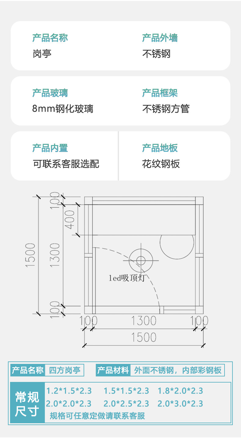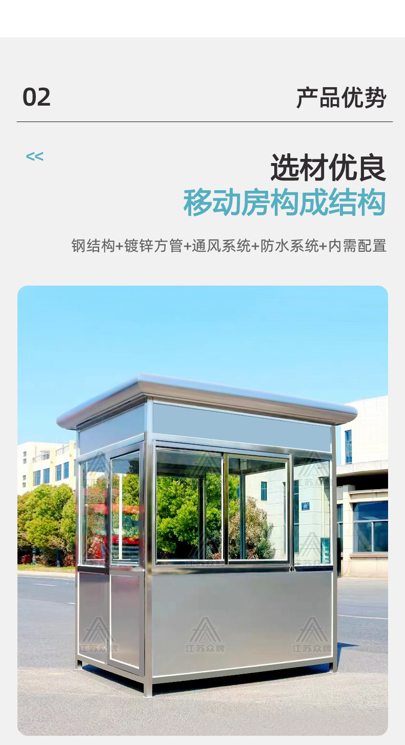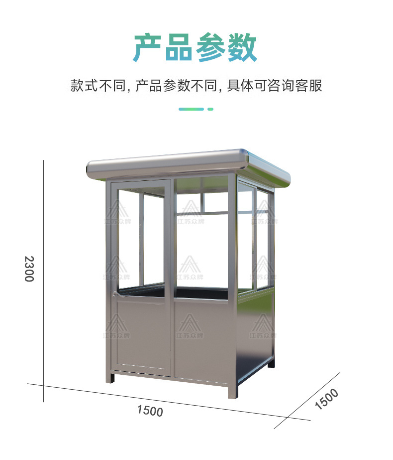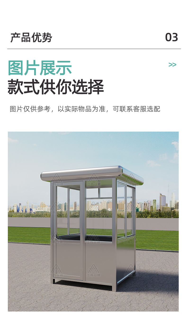 Puesto de guardia de acero inoxidable terminado, mesa de imagen de bienvenida, pabellón de seguridad, centro comercial, estacionamiento de pago, pabellón de seguridad, sala de servicio comunitario