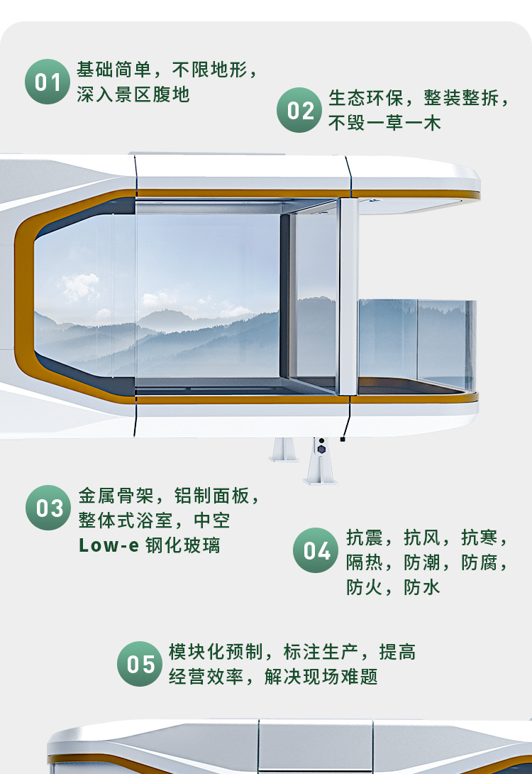 Casa Móvil Cápsula Espacial Rongjie, Alojamiento en Zona Turística, Hotel de Camping, Fabricante de Casas Integradas, Alojamiento en Cápsula Espacial
