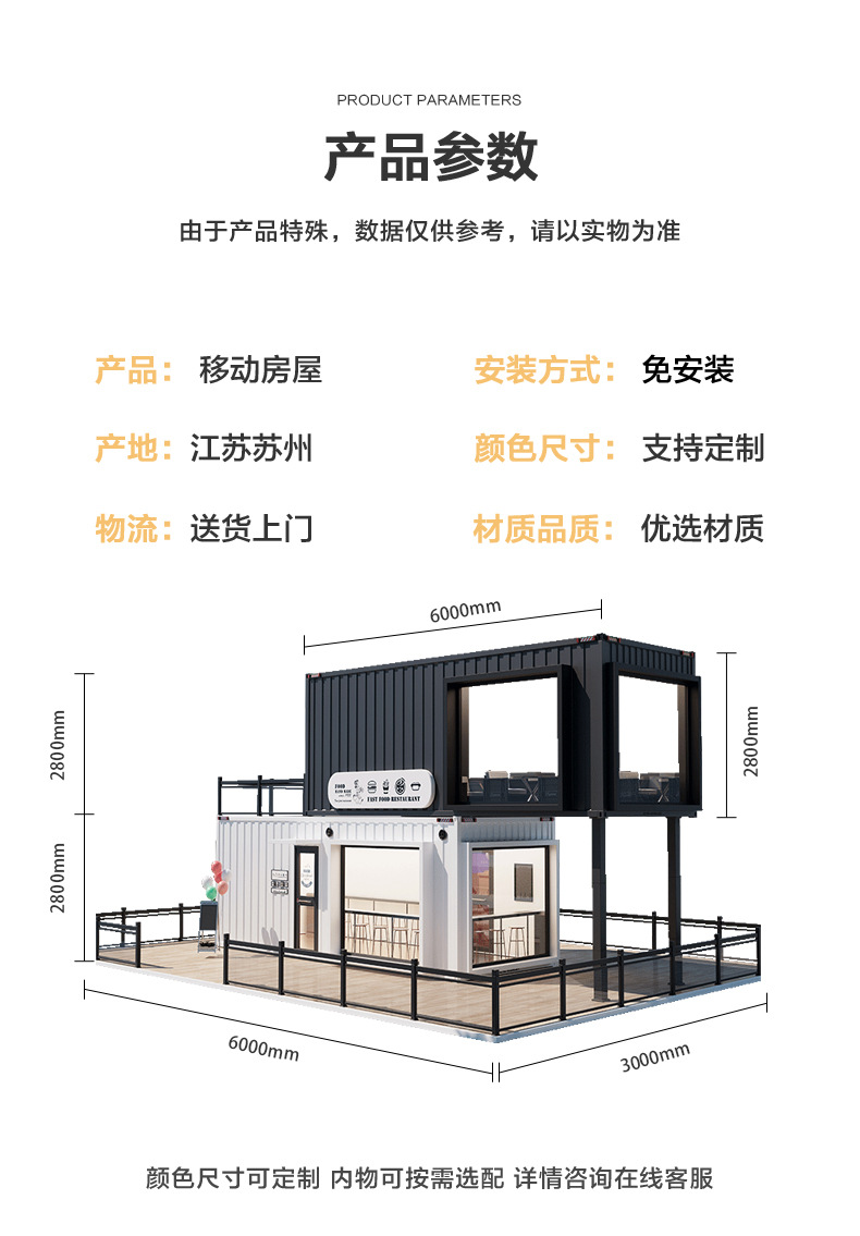 Tienda de contenedores de celebridades de Internet, casa de familia móvil, área escénica al aire libre, cafetería, tienda de té con leche, sala de contenedores