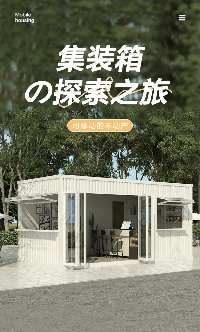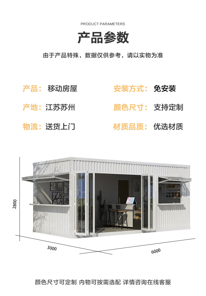 Contenedor casa móvil tienda cafetería tienda de té con leche coche de aperitivos calle comercial quiosco escénico B & B
