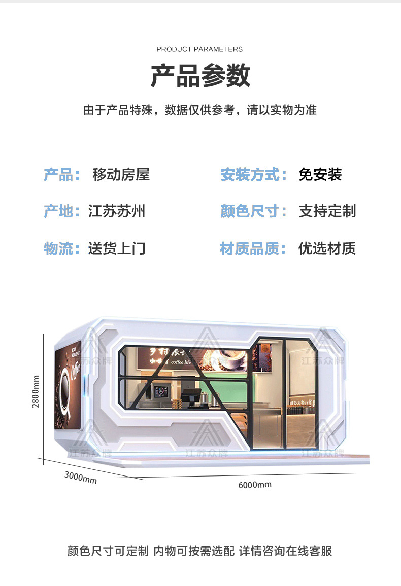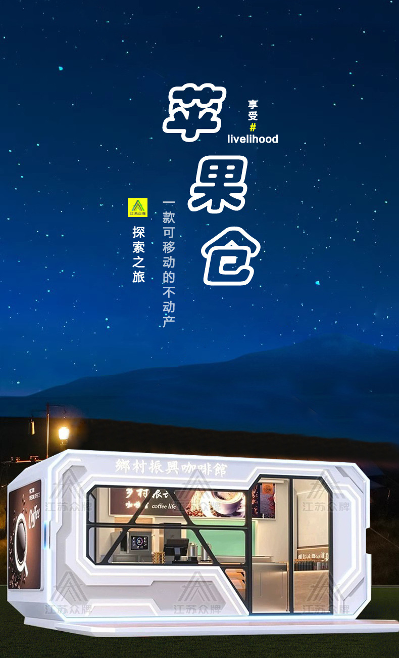 Space cápsula Mobile House Net Red Homestay Contenedor Residencia Apple Warehouse Servicio de oficina Estación Lounge