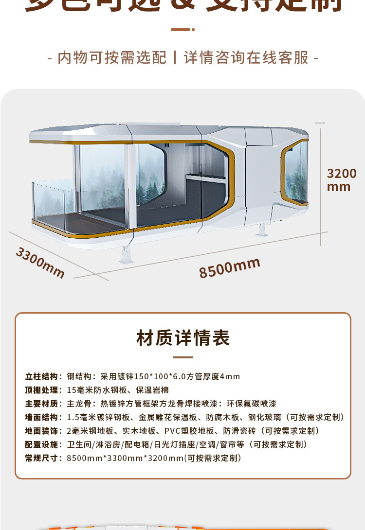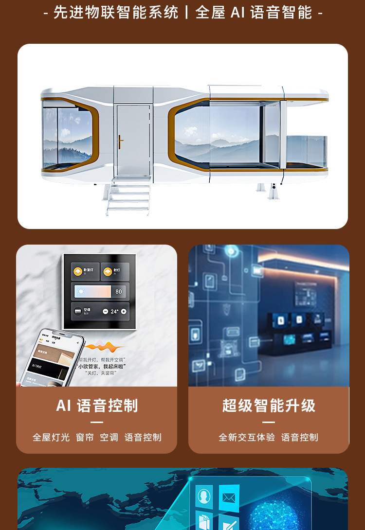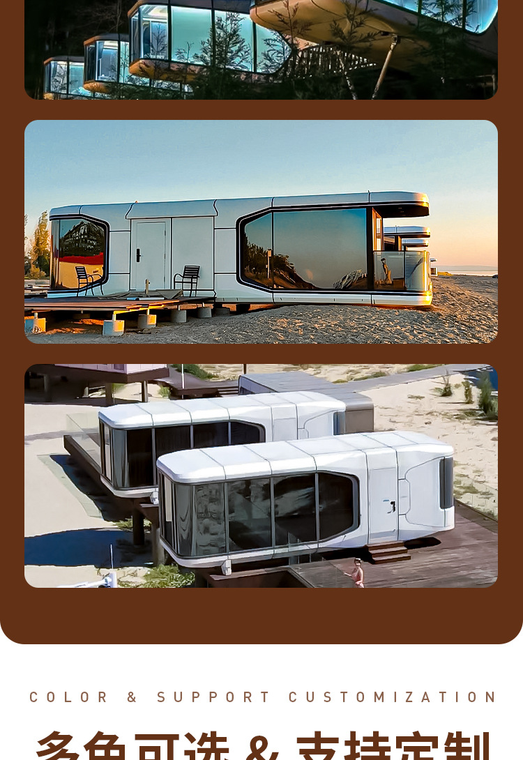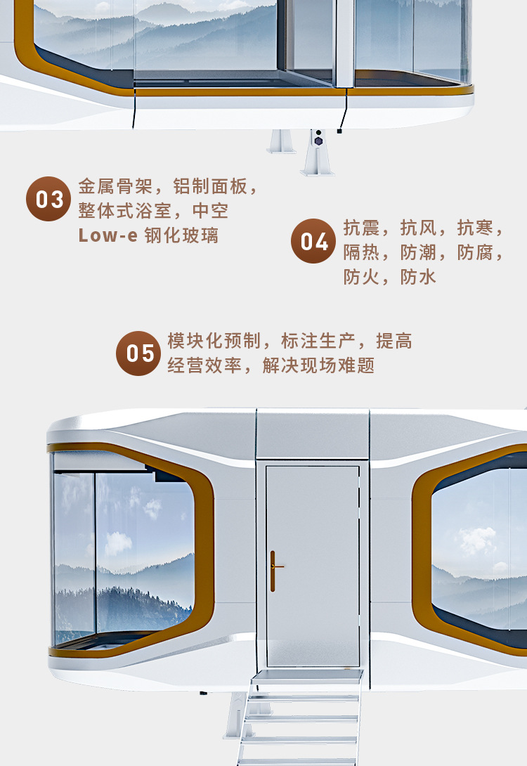 Cápsula espacial Casa móvil Contenedor Aviación Aluminio Sunshine Room Outdoor Scenic Area B & B Room Hotel Net Red Star Habitación vacía