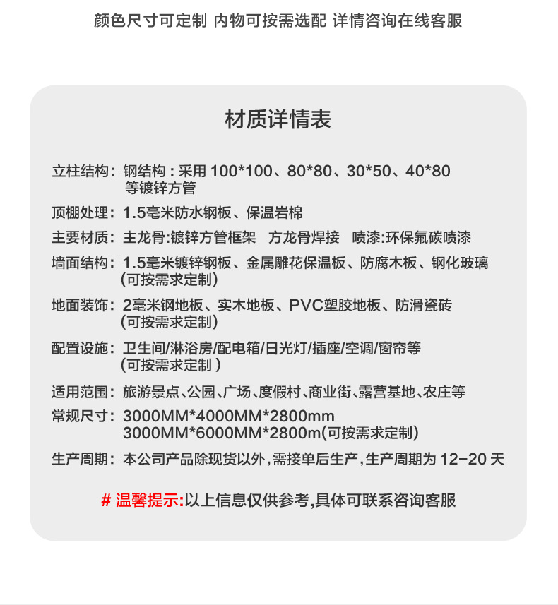 Contenedor creativo Casa móvil Red Red Camping al aire libre Residentes Casa de familia Casa integrada Casa de sol para el hogar
