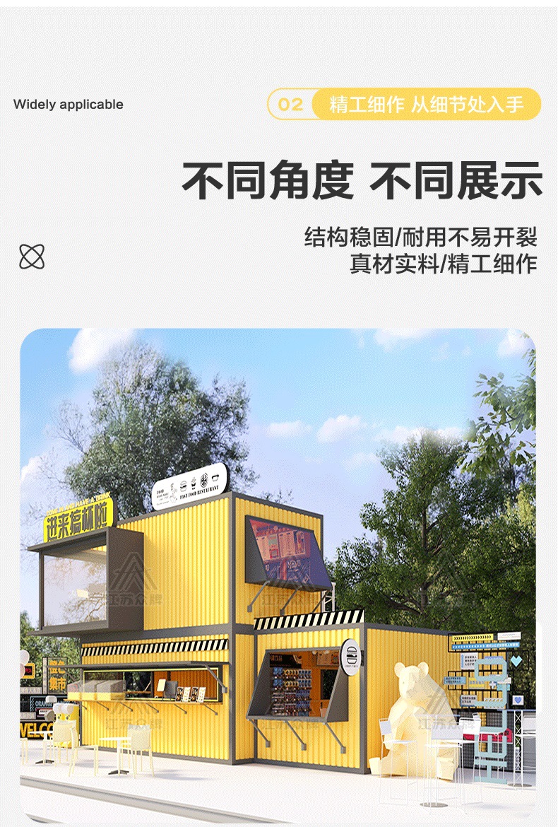 Contenedor casa móvil tienda cafetería tienda de té con leche coche de aperitivos calle comercial quiosco escénico personalización de la casa de familia