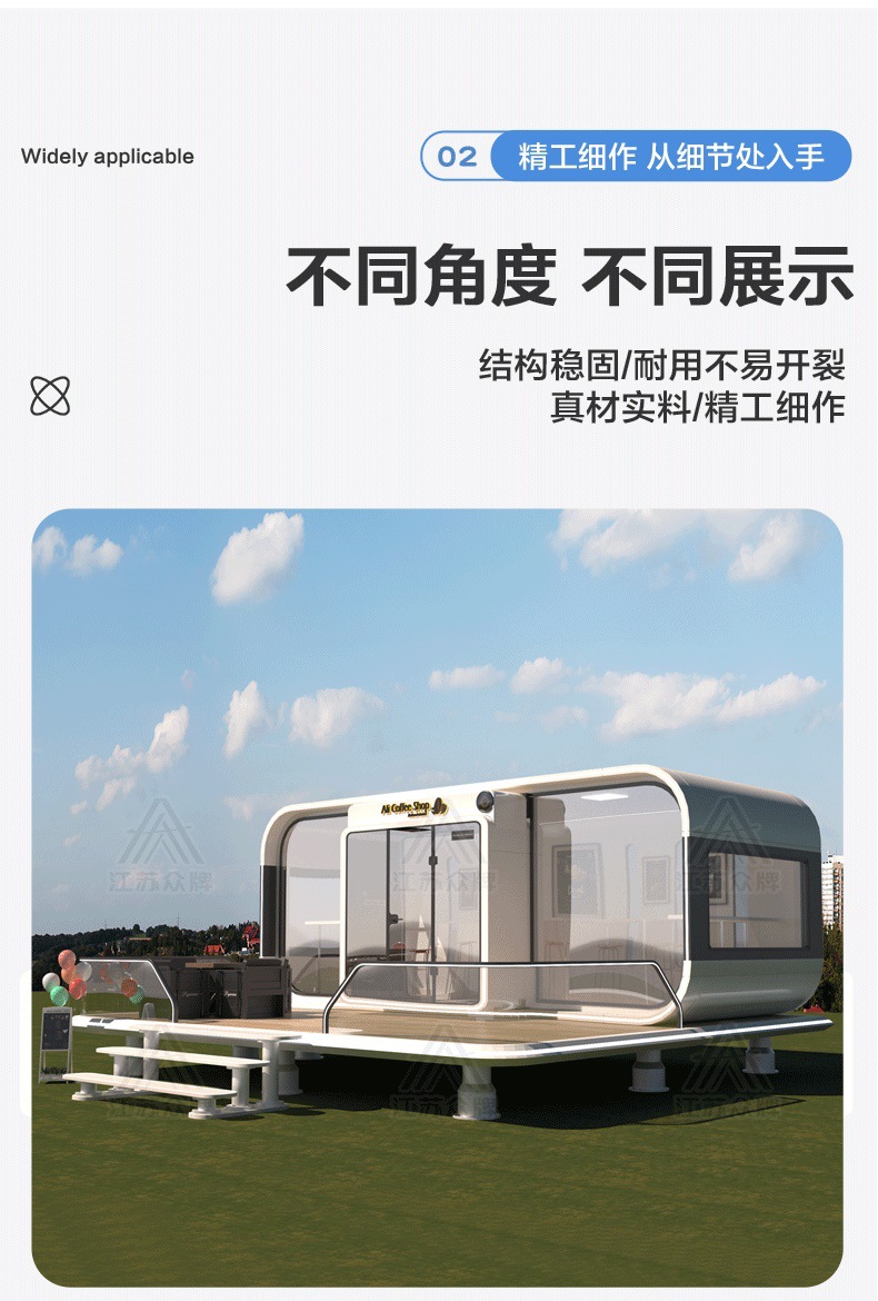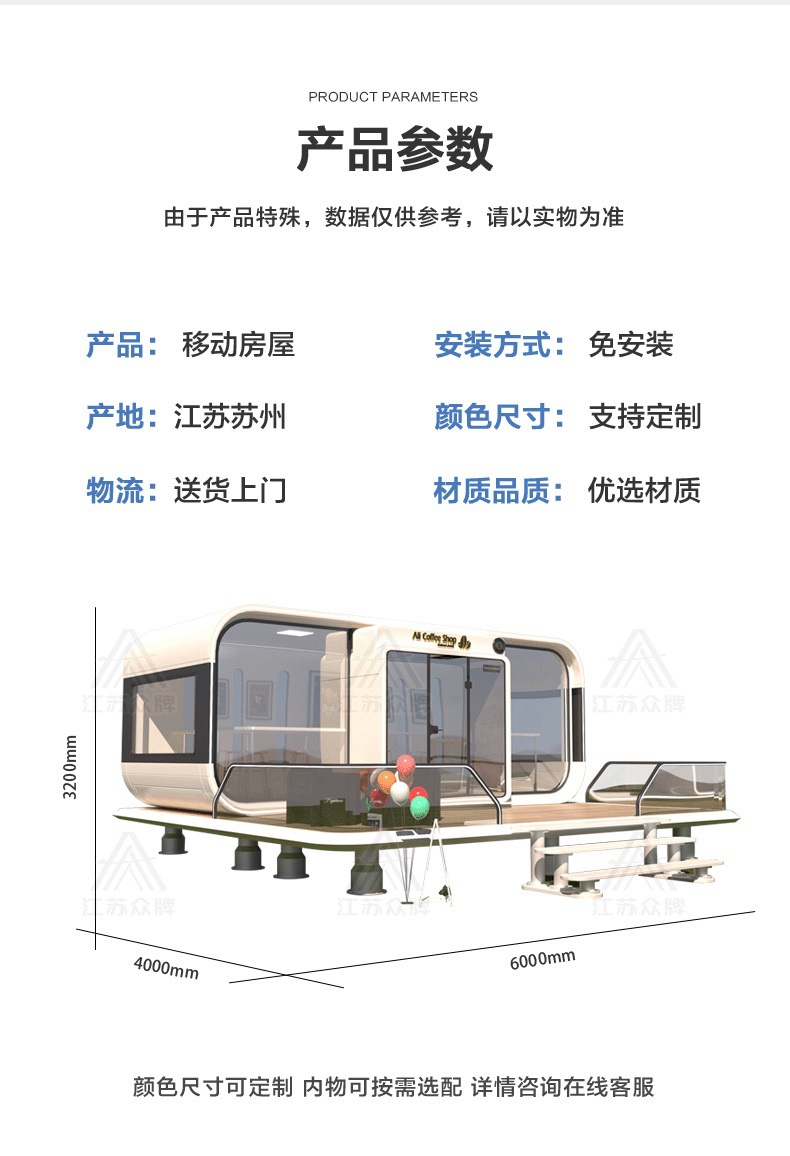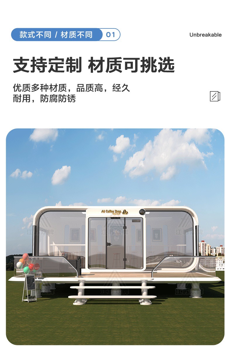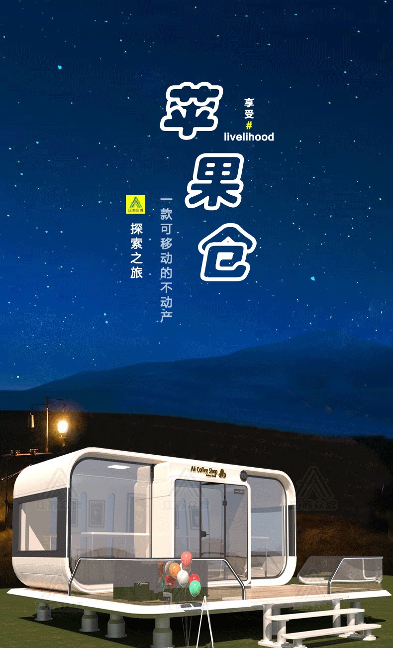 Cápsula espacial, casa móvil, almacén de manzana al aire libre, oficina, B & B, sala de estar en invierno, tablero de actividades, casa, ensamblaje popular