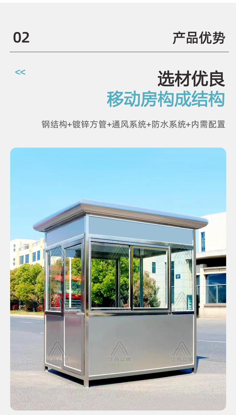 Cabina de guardia de acero inoxidable al aire libre, cabina de seguridad terminada, estacionamiento, cabina de peaje de servicio, sala de guardia comunitaria, cabina de seguridad móvil