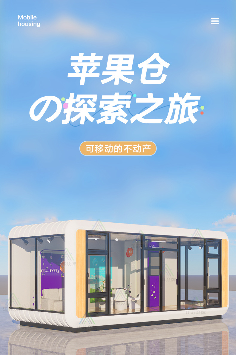 Casa móvil cápsula espacial Apple Cang Residentes B & B Sala de sol al aire libre Habitación de cielo estrellado Hotel Casa de contenedores