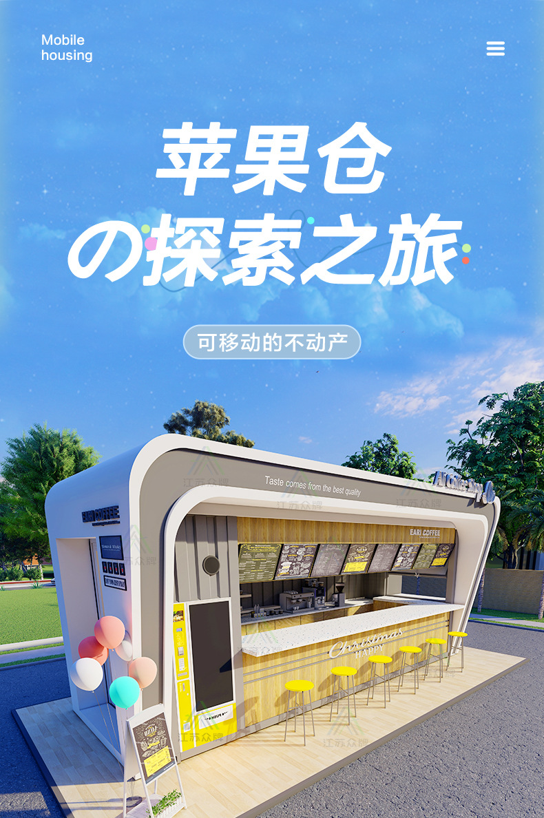 Red creativa de Internet Cabina de Apple Casa móvil Calle comercial al aire libre Tienda de té con leche Café Quiosco Tienda emergente