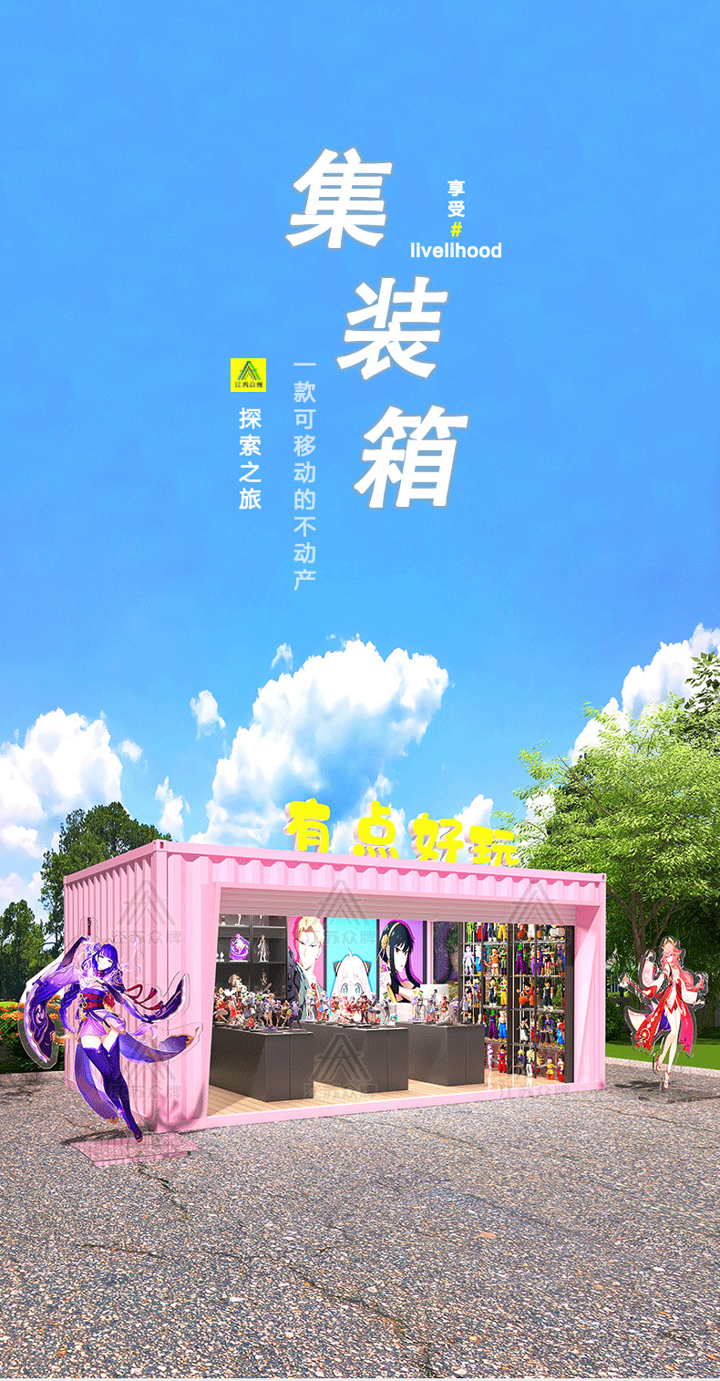 Container Commercial Street, tiendas de celebridades de Internet, quioscos al aire libre, contenedores creativos, casas móviles, lugares escénicos, bocadillos, cafeterías