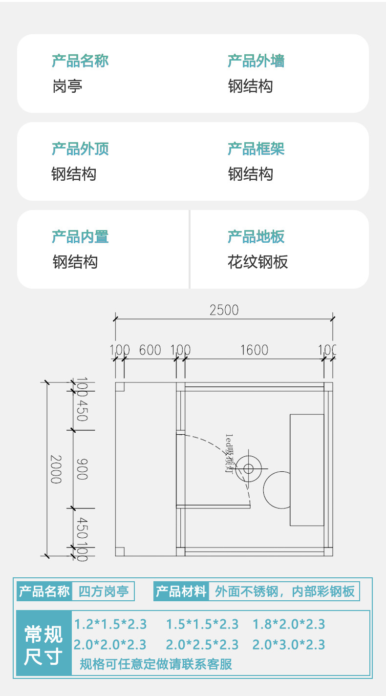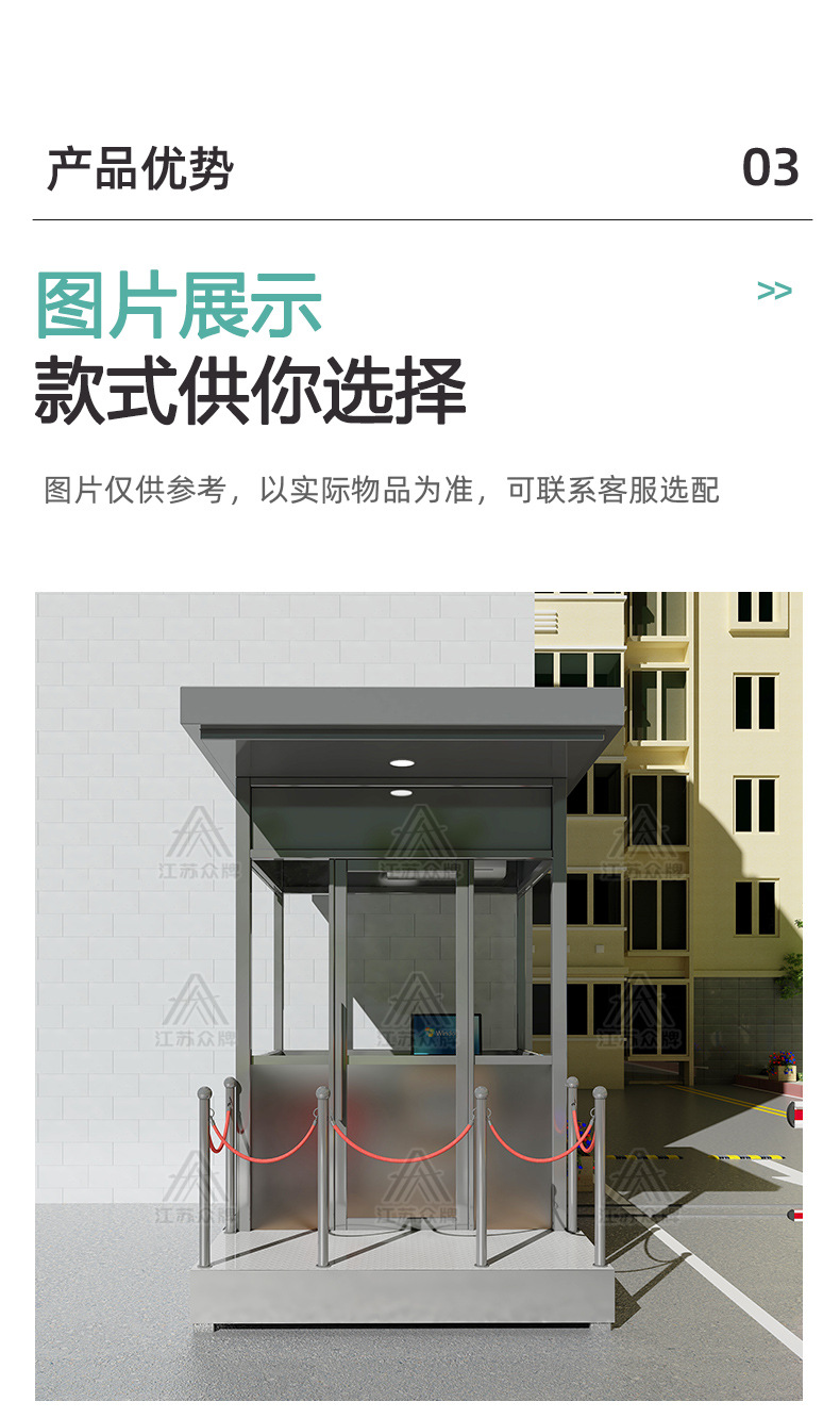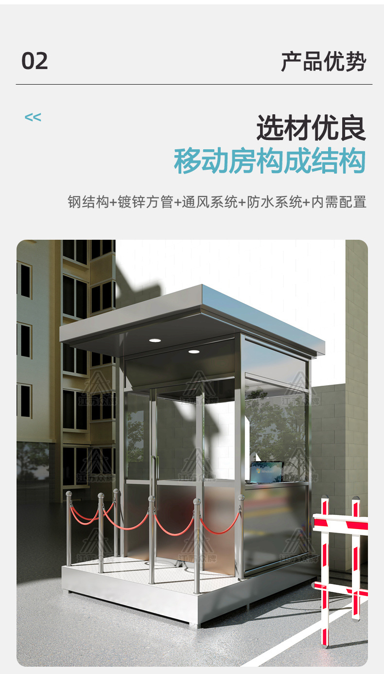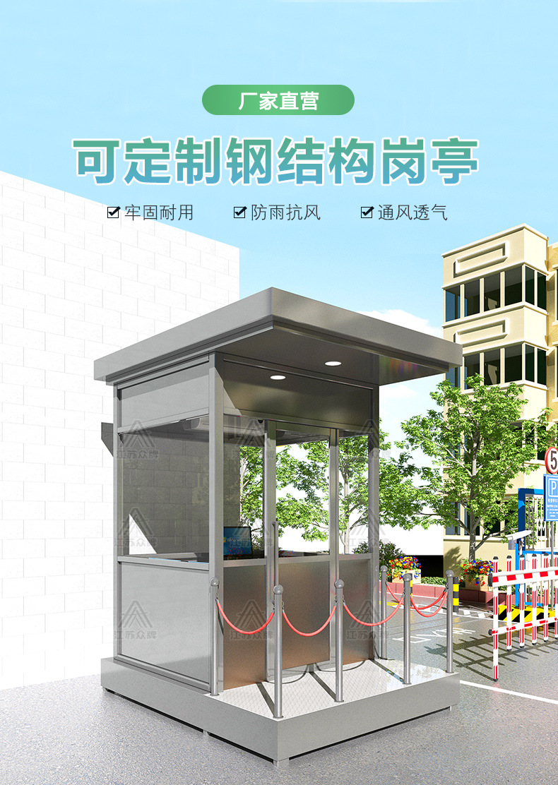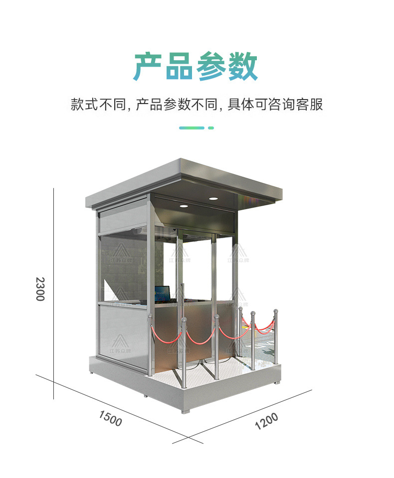 Puesto de guardia de acero inoxidable terminado, mesa de imagen de bienvenida, pabellón de seguridad, centro comercial, estacionamiento de pago, pabellón de seguridad, sala de servicio comunitario