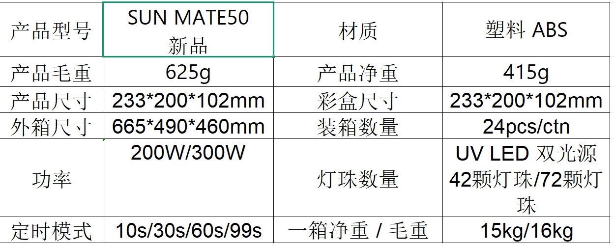 | Número de artículo | SUN MATE 50 |