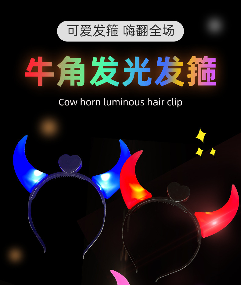 Diadema luminosa Diadema de cuerno de toro, accesorios para el cabello en vivo de celebridades de Internet, concierto, tocado luminoso, diadema de cuerno de ciervo cosplayu