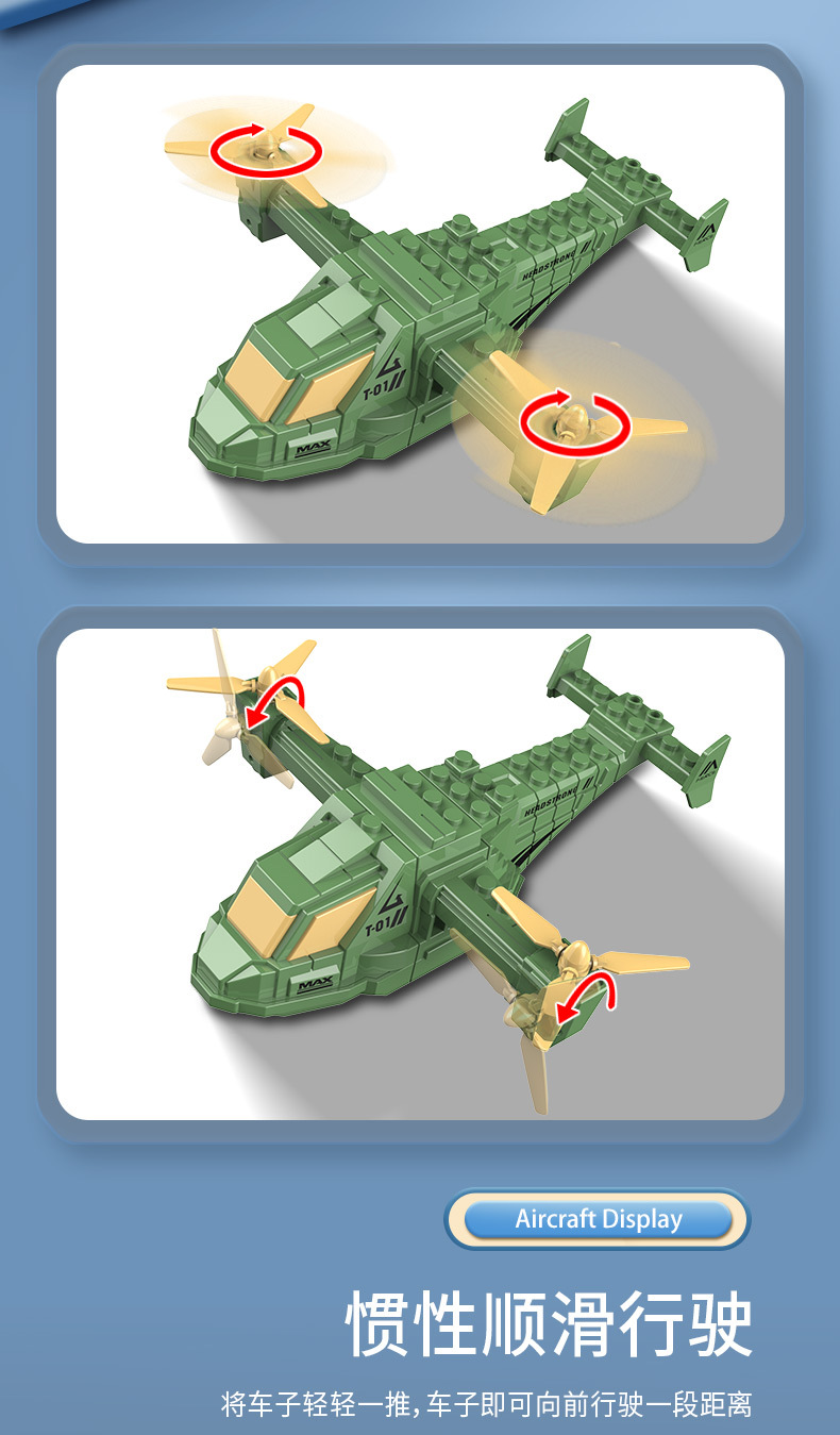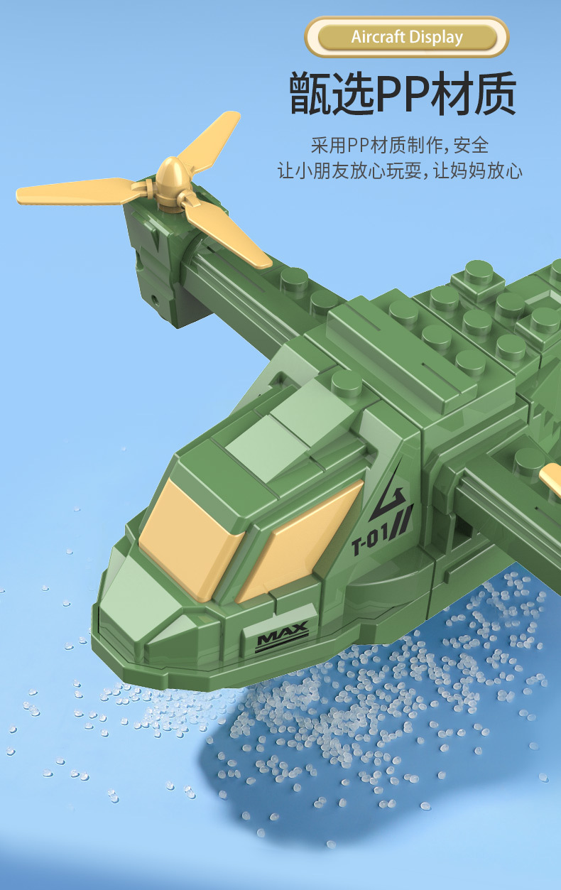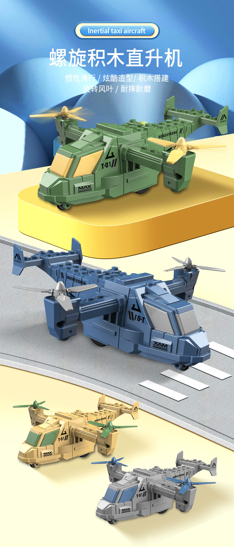 Los juguetes de bloques de construcción en espiral de helicóptero inercial para niños se pueden combinar con bloques de construcción, muñecos de soldado, aviones giratorios para niños al por mayor