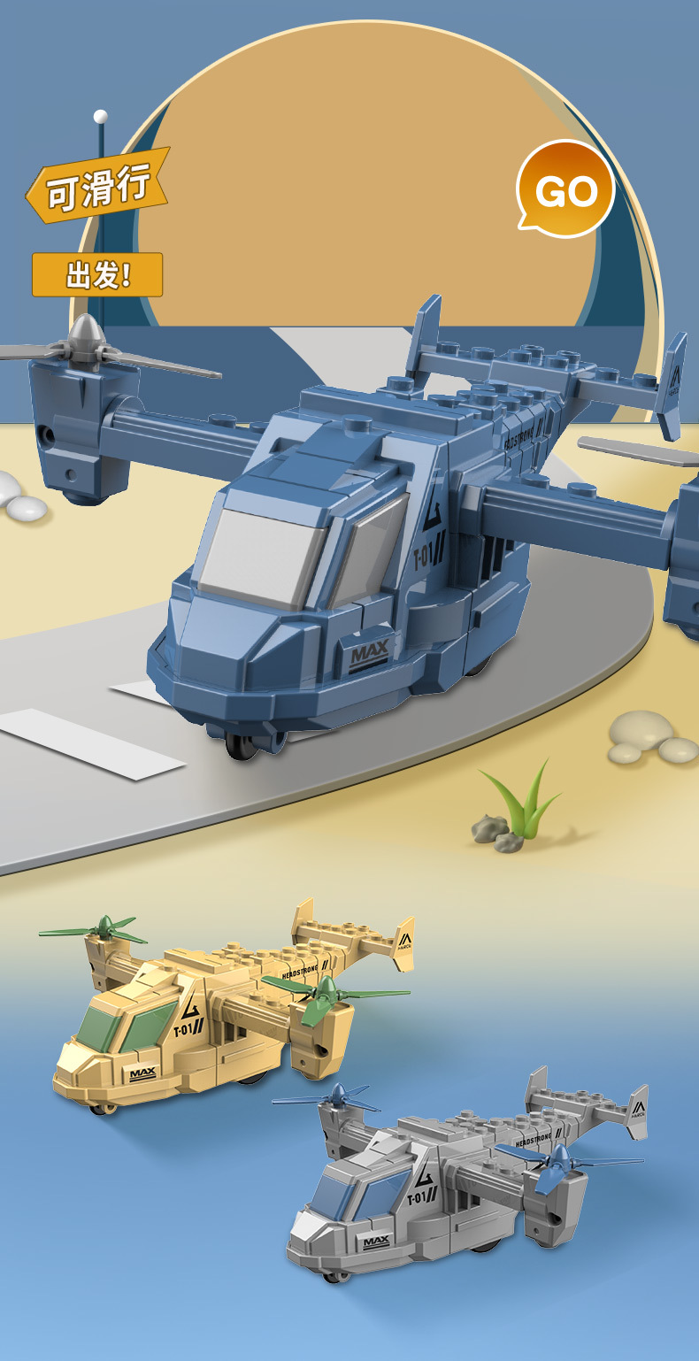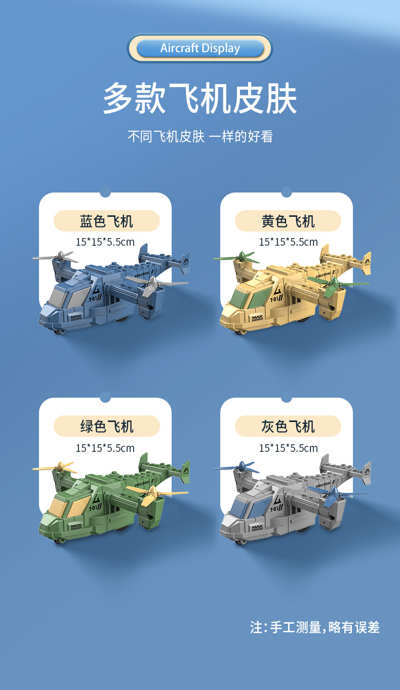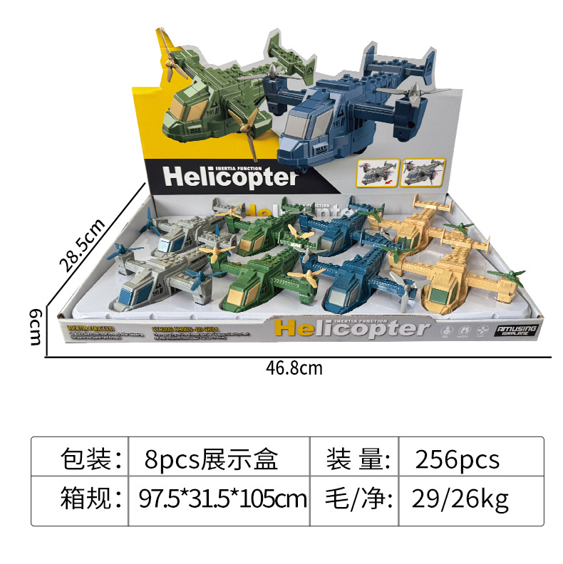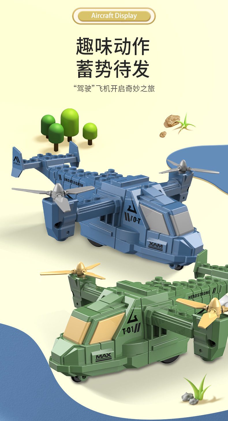 Los juguetes de bloques de construcción en espiral de helicóptero inercial para niños se pueden combinar con bloques de construcción, muñecos de soldado, aviones giratorios para niños al por mayor