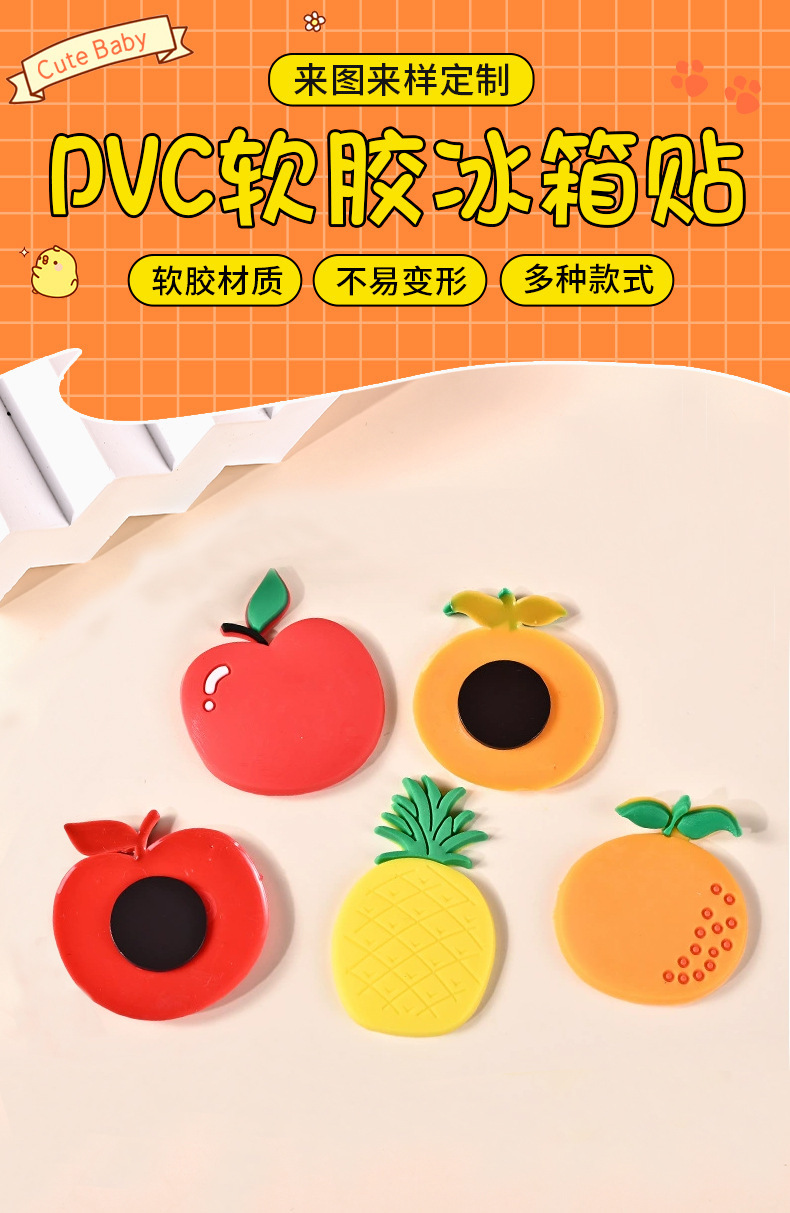 Pegamento de PVC para refrigerador de pegamento suave Pegamento magnético de dibujos animados creativo personalizado Mini fruta Pegamento magnético de pegamento suave Adornos decorativos
