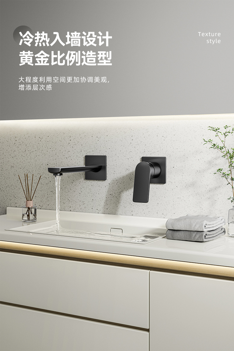 Pared-incrustado cuadrado de cobre oculto Cuenca del grifo incrustado caja lavabo cuenca caliente y fría grifo al por mayor