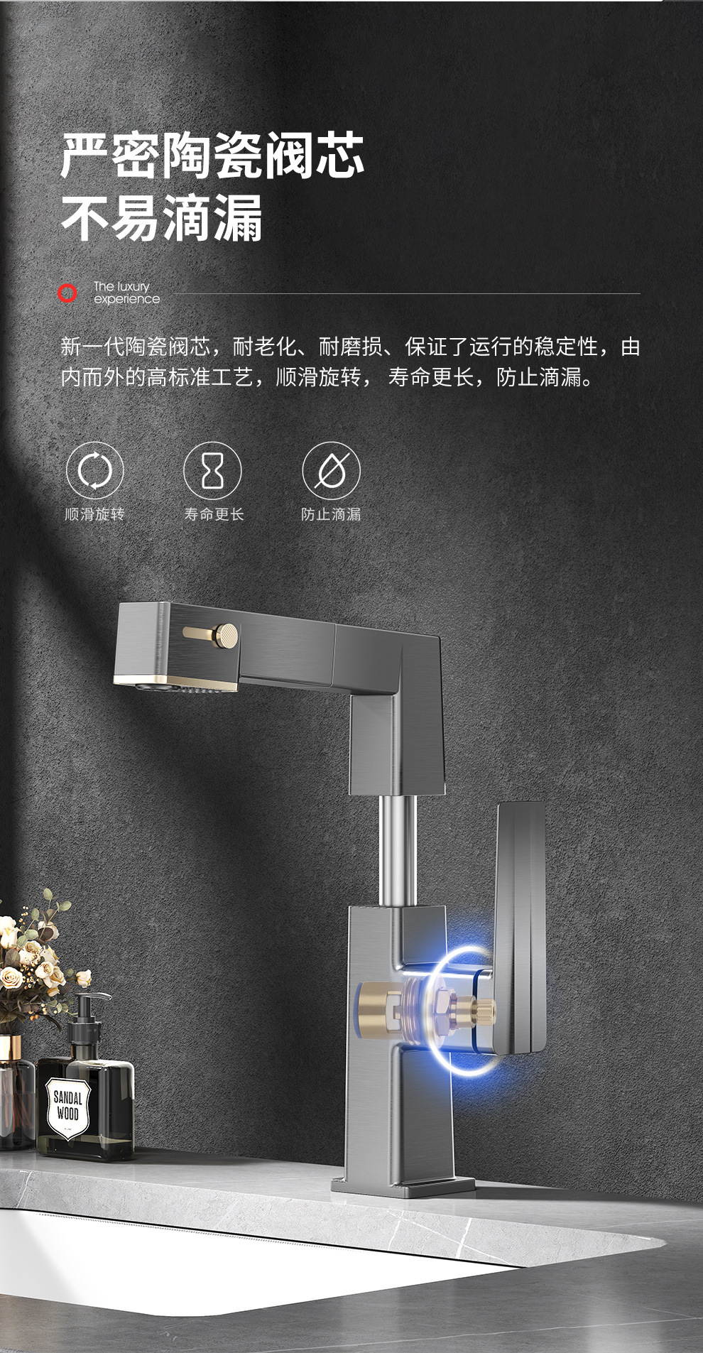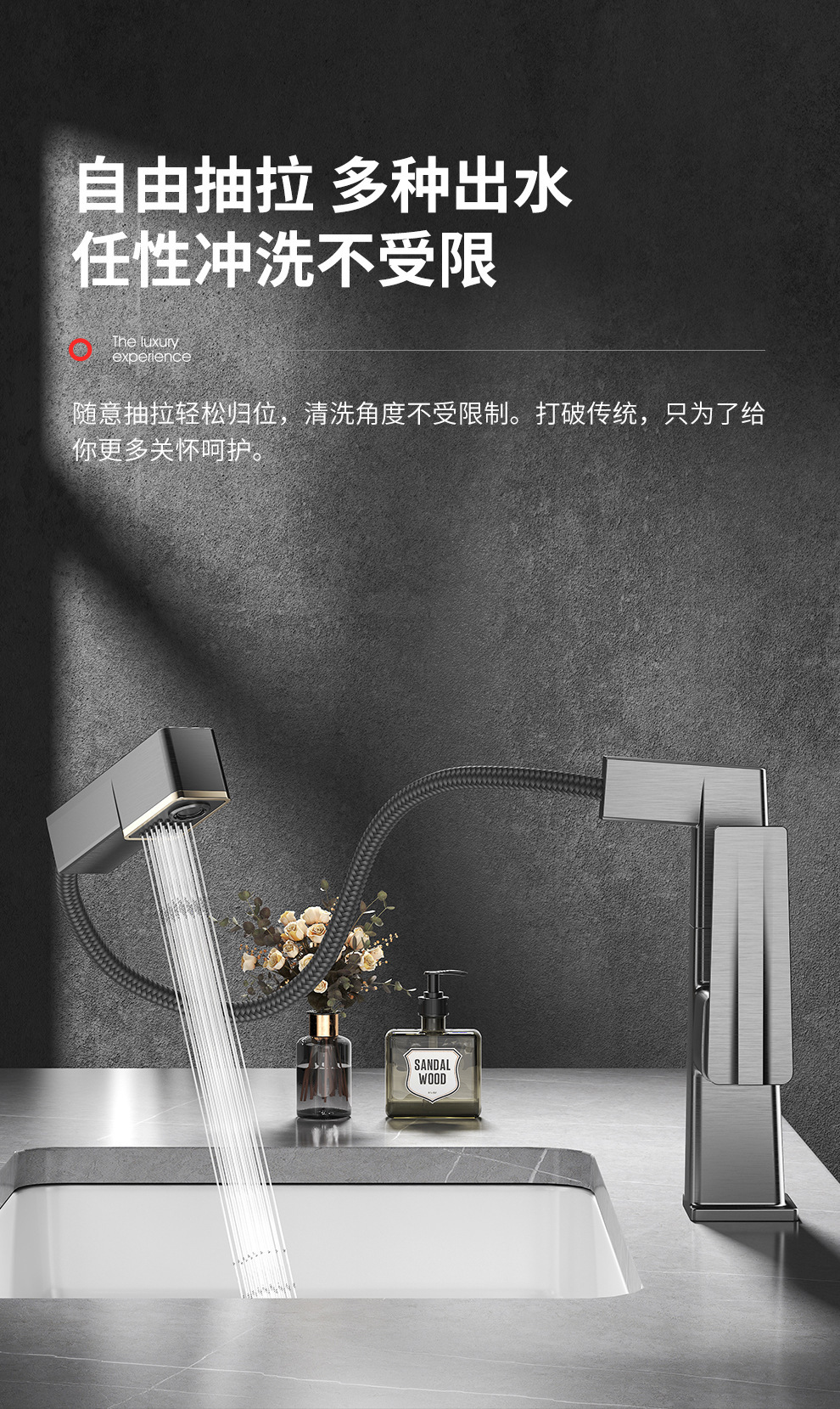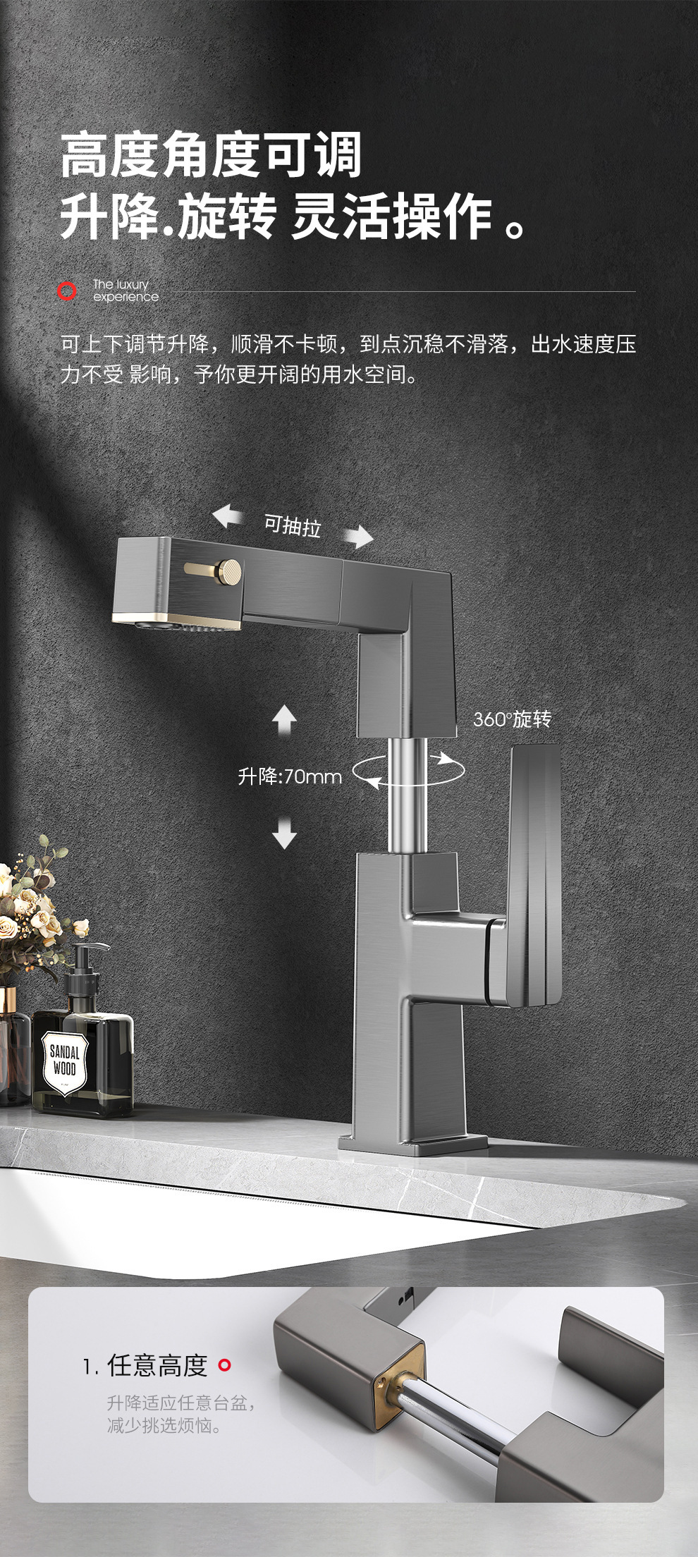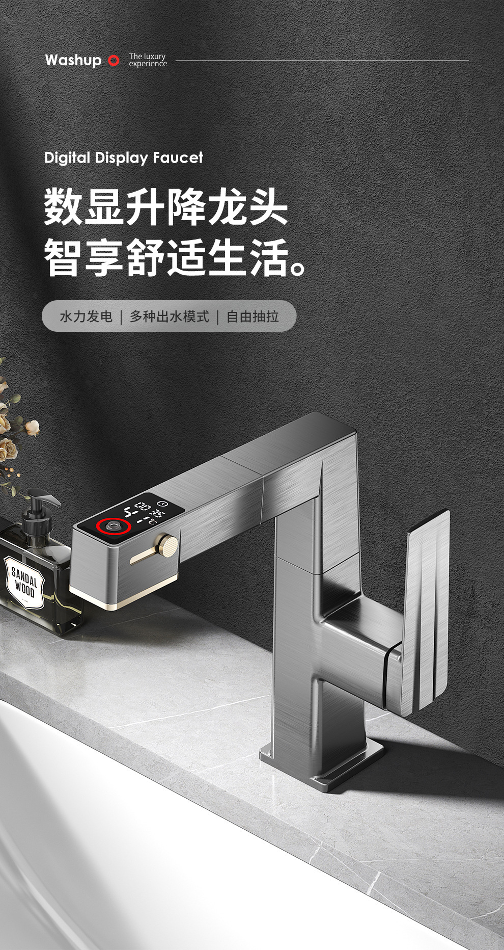 Uno por uno inteligente pantalla digital pistola gris pull-out baño gabinete cuenca del grifo ajustable giratorio caliente y fría del grifo