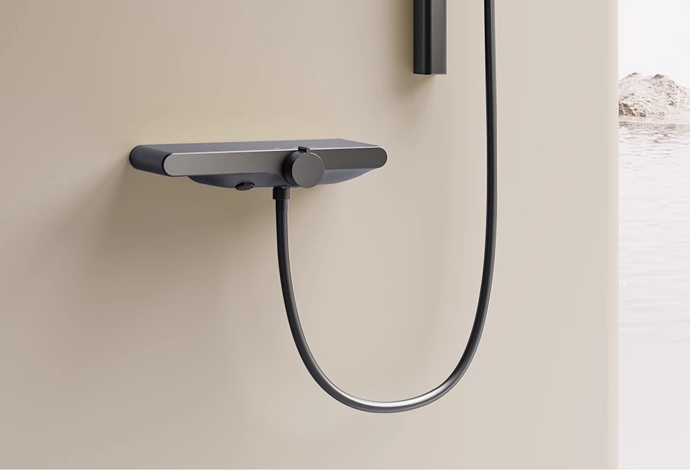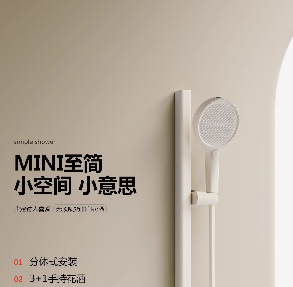 Juego de ducha para el hogar de estilo crema fría y caliente simple dividido uno por uno, simple y pequeño