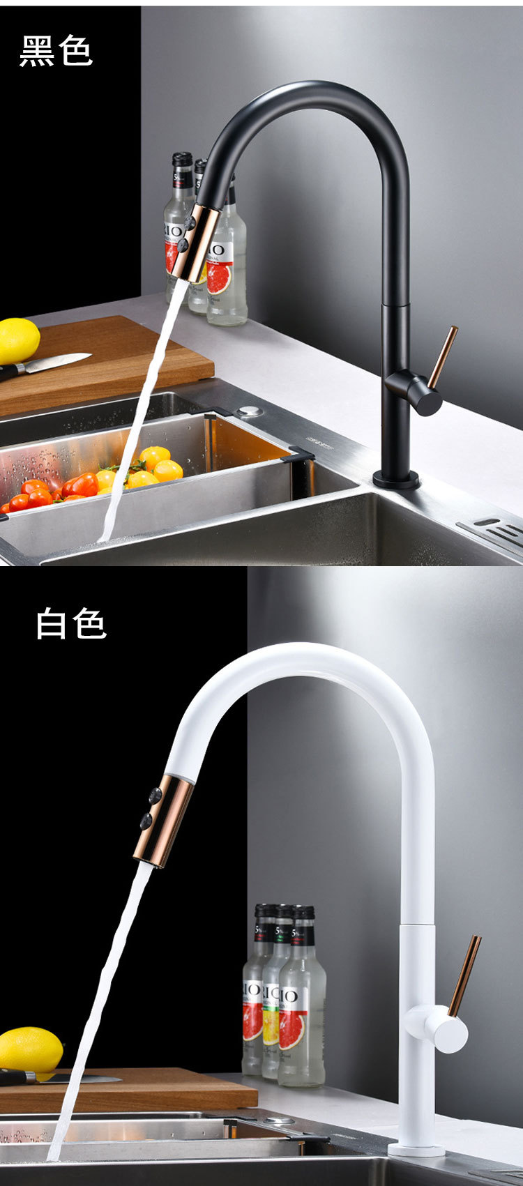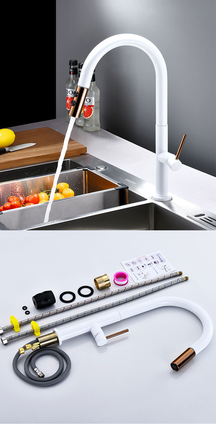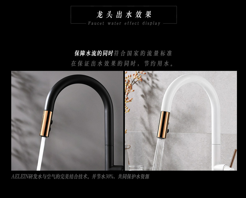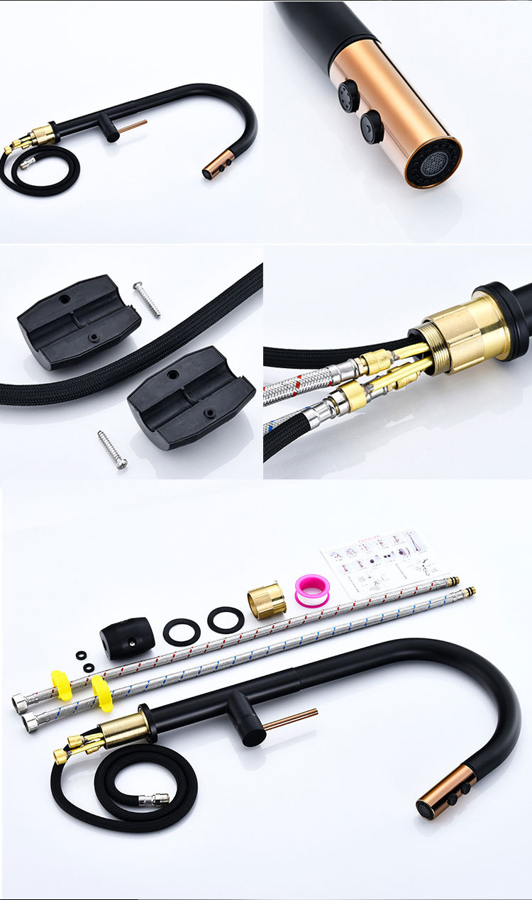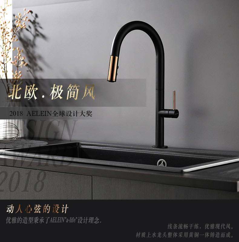 Grifo de extracción de cocina de cobre nórdico transfronterizo, fregadero frío y caliente, lavabo de verduras, grifo de lavabo de comercio exterior negro