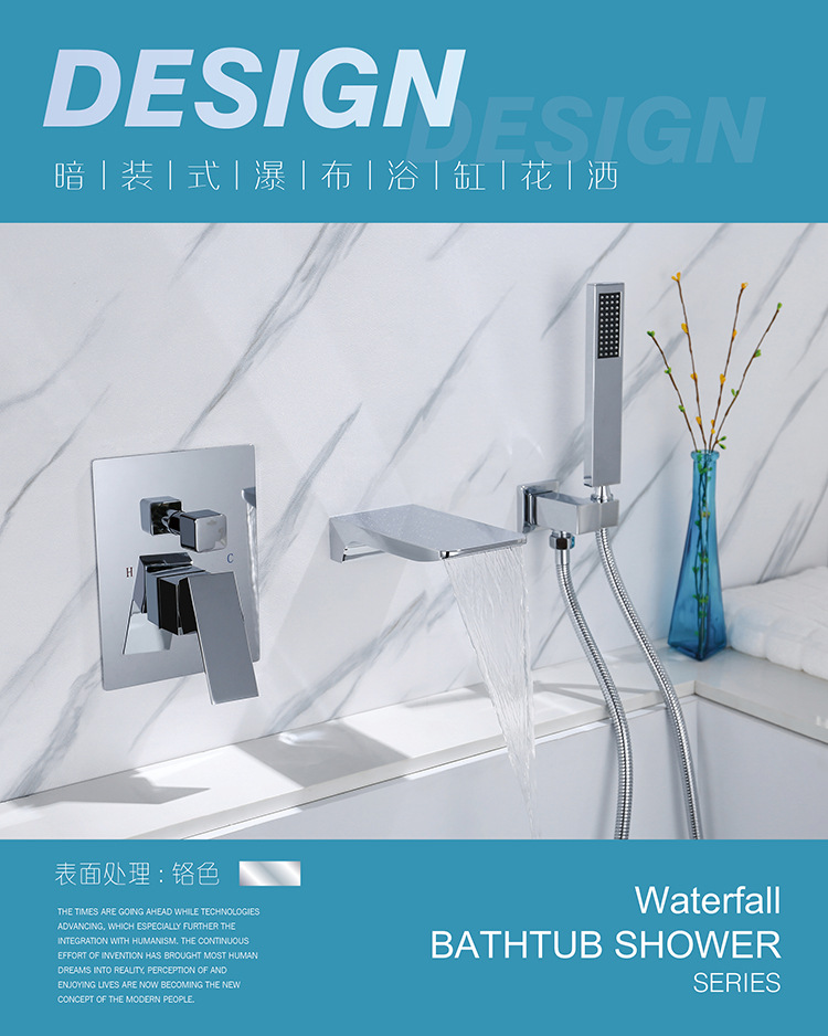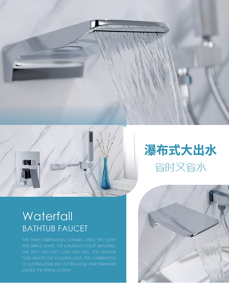 La vida del hotel de la canción oculta grifo cascada de cobre incrustado grifo de la bañera caliente y fría entrega de una sola pieza