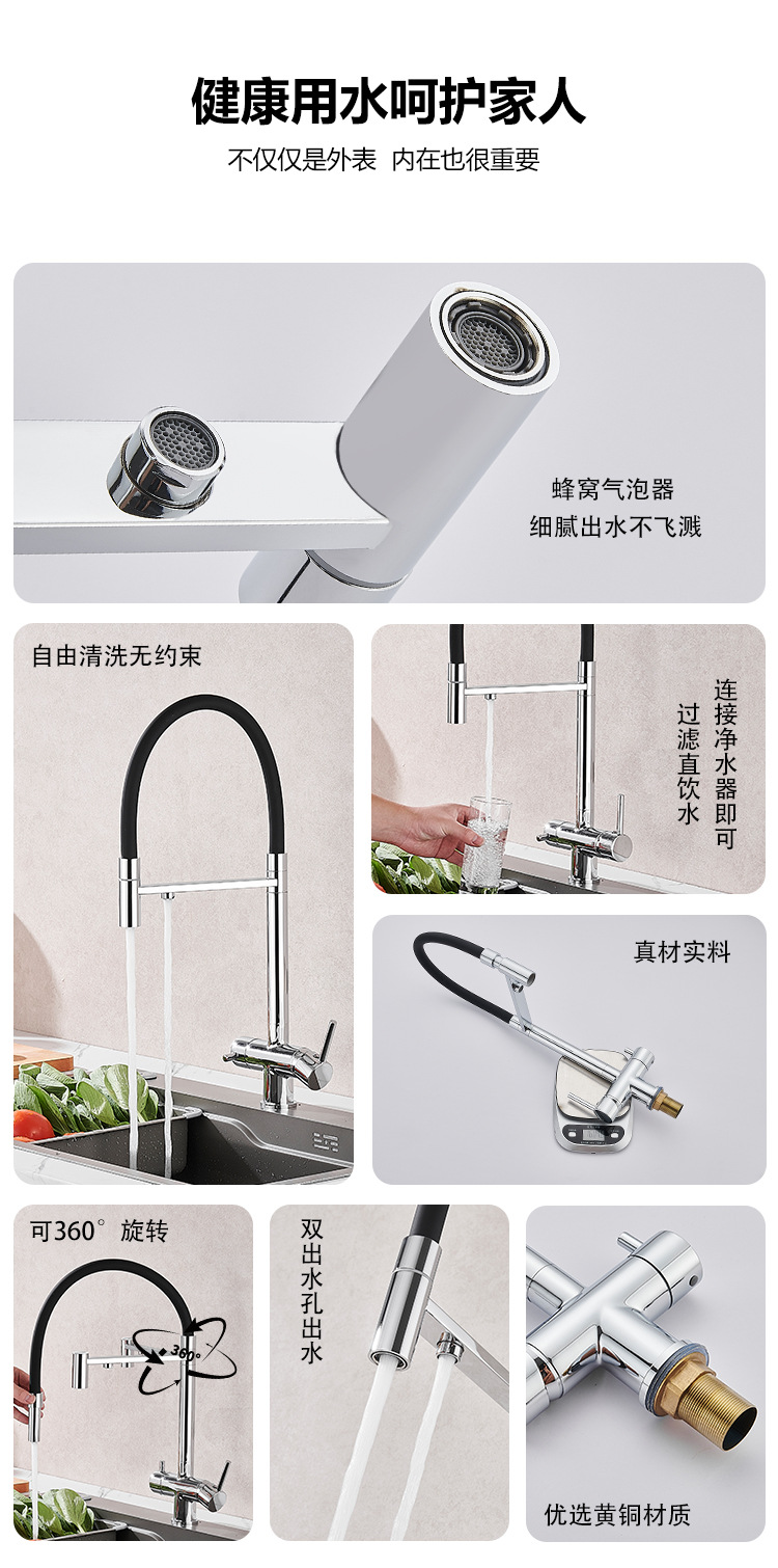 Grifo tres en uno de cobre transfronterizo, lavado en frío y caliente, lavabo de cocina, purificador de agua, tanque de agua potable directo, grifo de limpieza doméstico