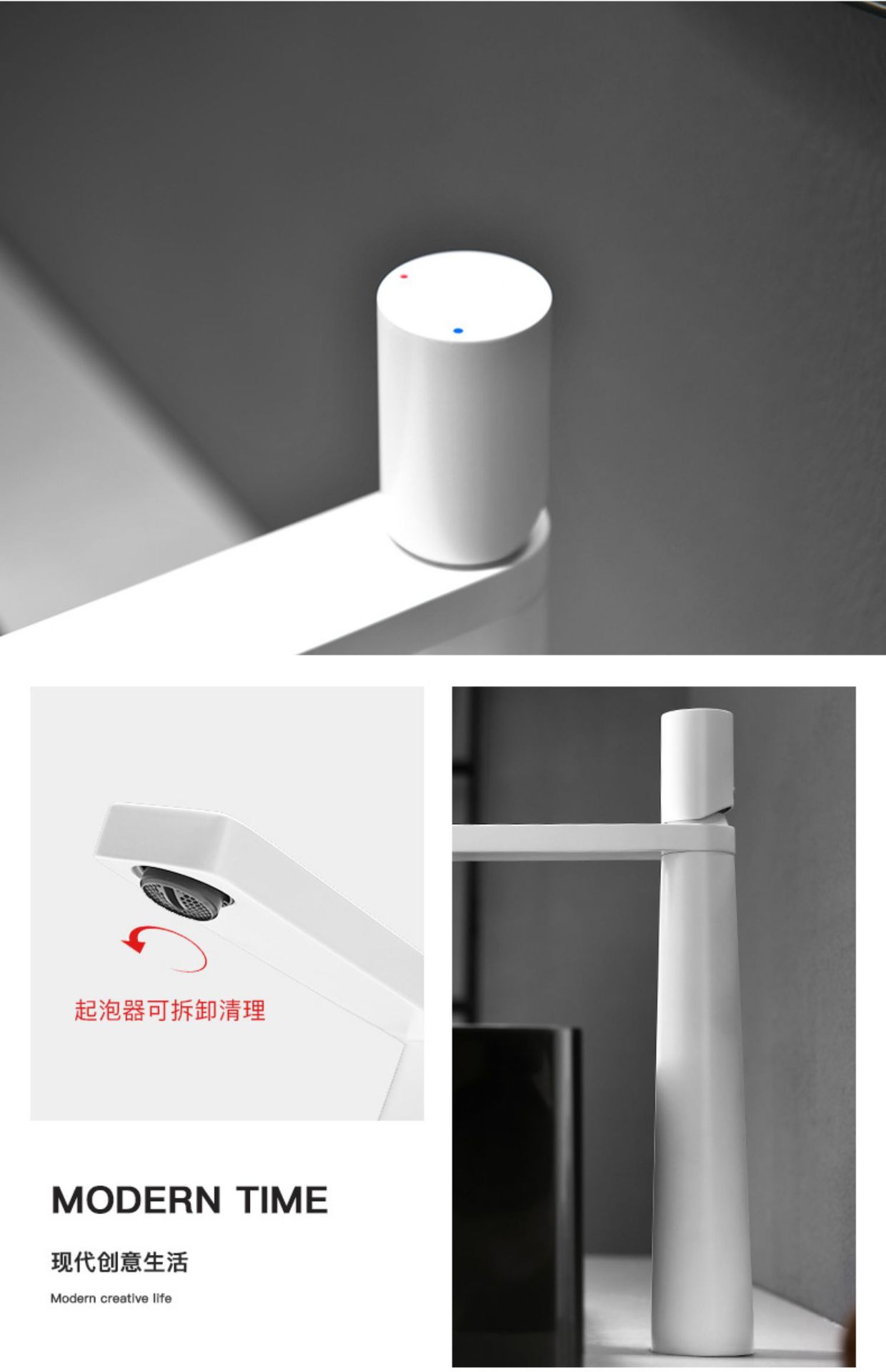 Grifo blanco transfronterizo de cobre, grifo de lavabo sobre encimera, personalidad simple, grifo de lavabo de baño, lavabo