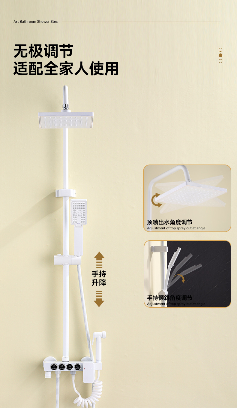 Blanco botón ducha cabeza traje de baño cobre lluvia baño casa baño Baño abierto montado boquilla de Ducha