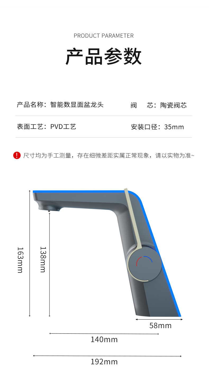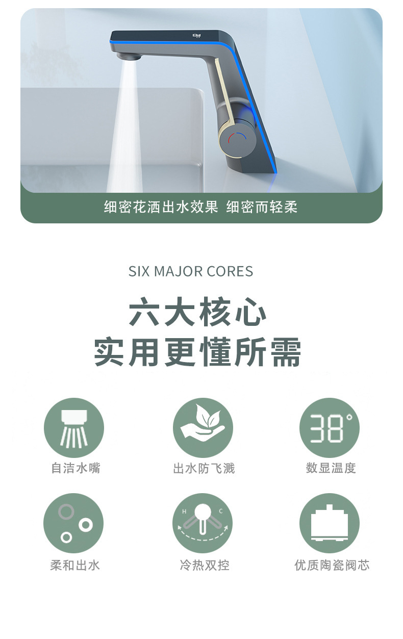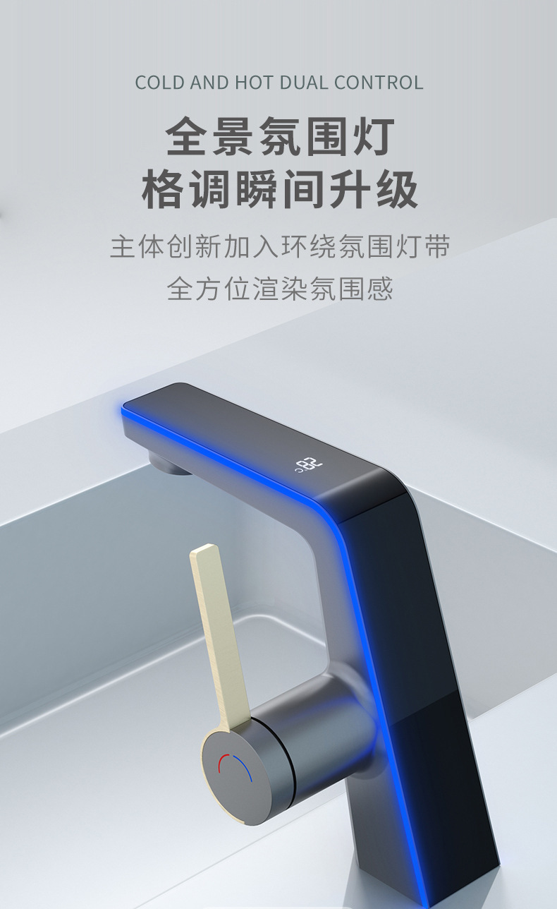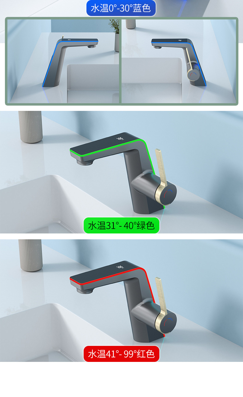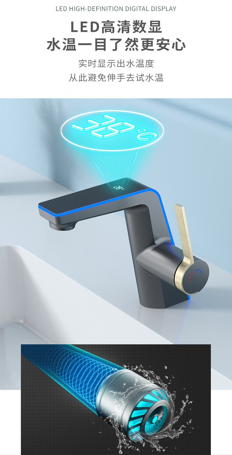 Pantalla digital lavabo grifo frío y caliente lavabo gris lavabo lavabo debajo del lavabo gabinete de baño grifo de un solo orificio