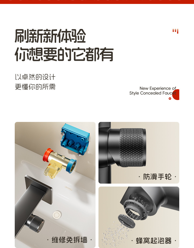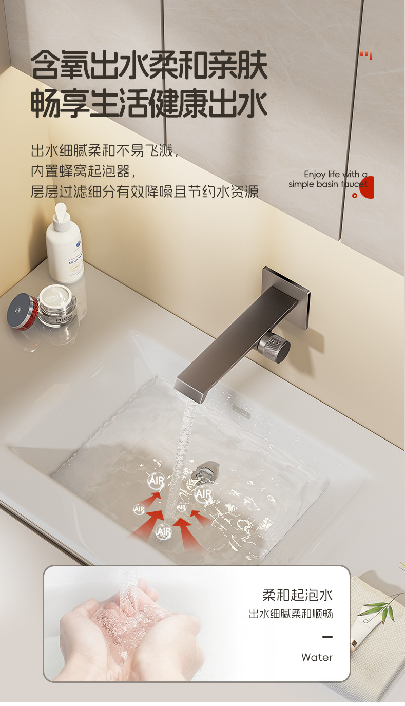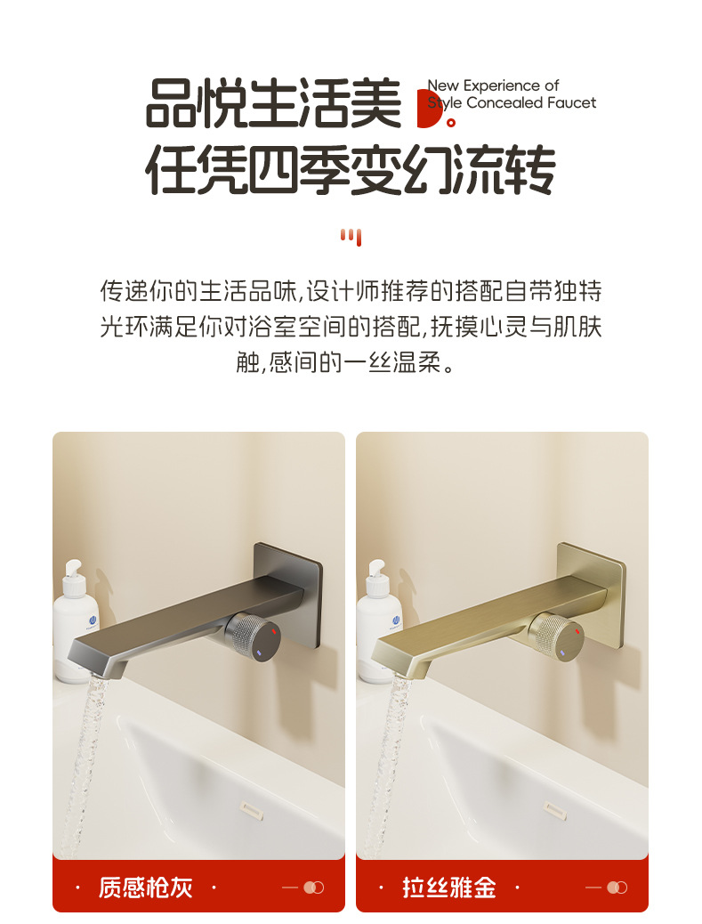 Transfronterizo pistola gris lavabo grifo de pared incrustado grifo caliente y frío Hotel hogar oculto grifo en stock al por mayor