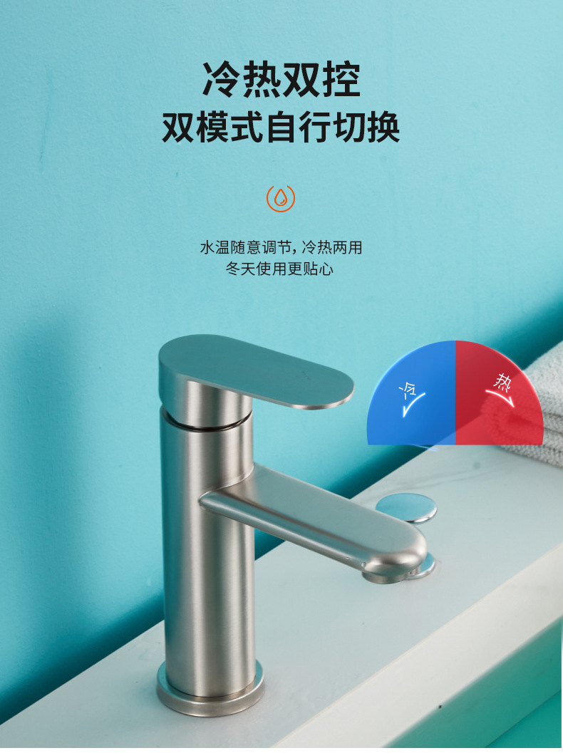 Grifo de acero inoxidable para fregadero, lavabo, grifo de agua fría y caliente para el hogar, lavabo de baño, encimera moderna