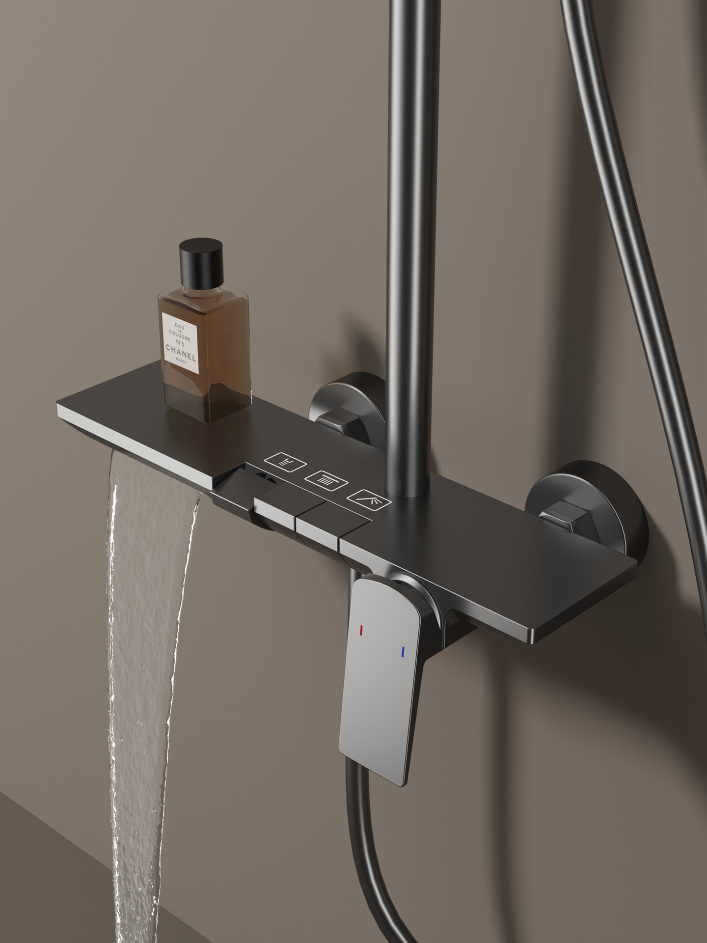 Juego de ducha de cobre transfronterizo, pistola, crema gris, juego de ducha blanca, proyecto de hotel para el hogar, barra elevadora, baño sobrealimentado