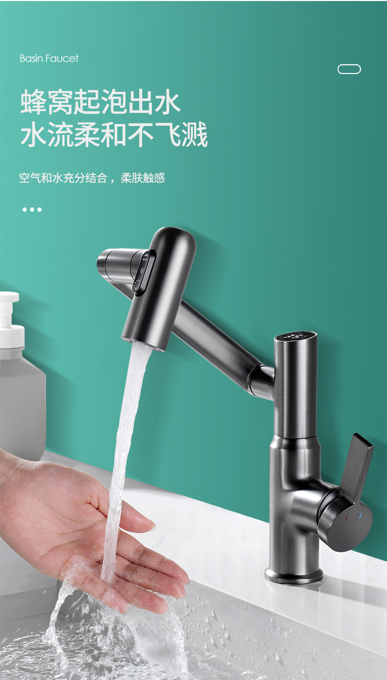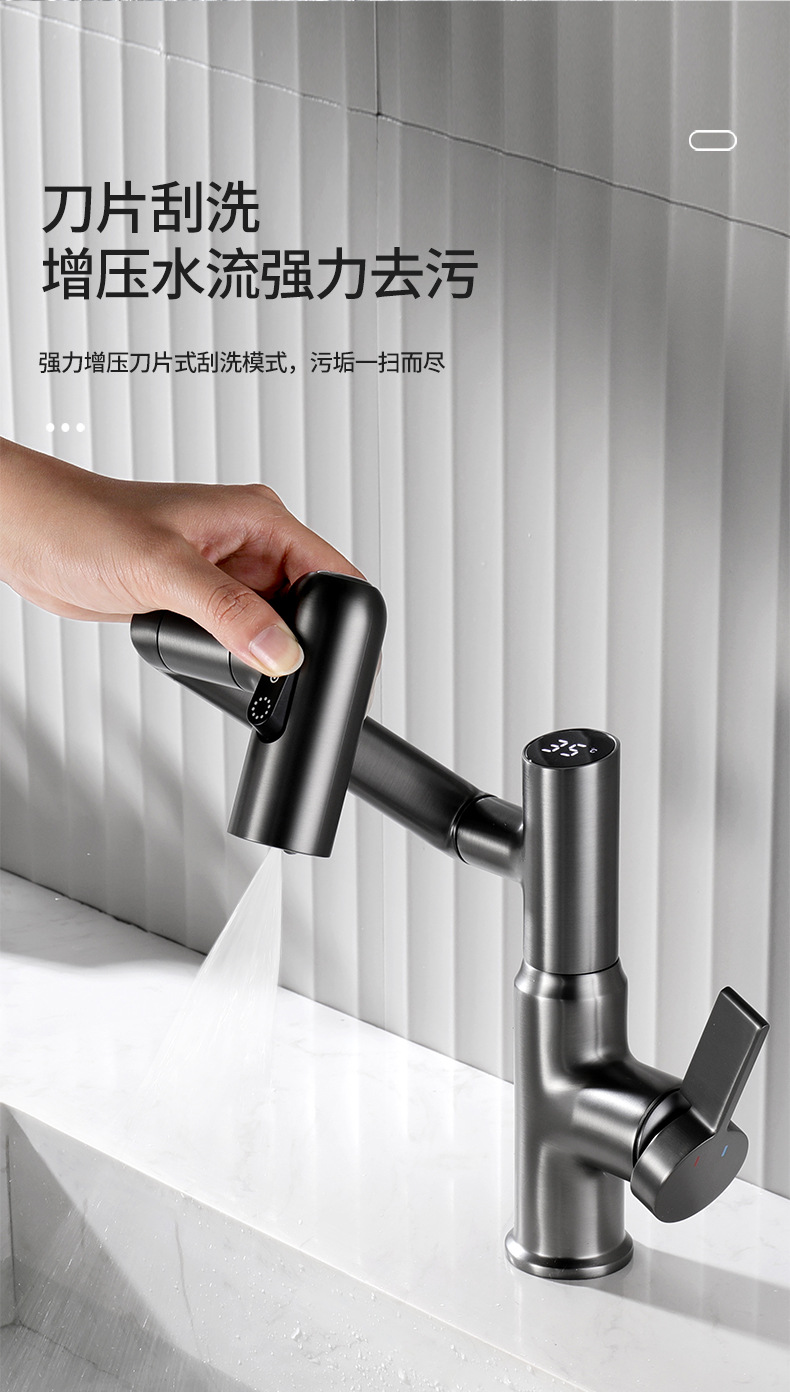 Uno por uno pistola de baño de latón gris mueble de baño pantalla digital gato de la suerte de agua de lavado de baño lavabo champú universal