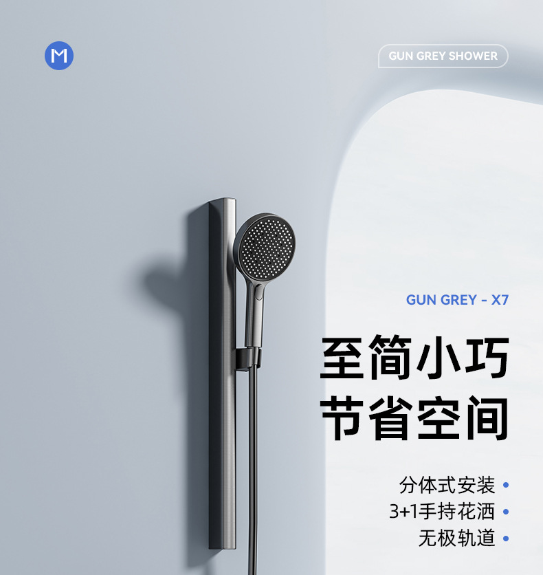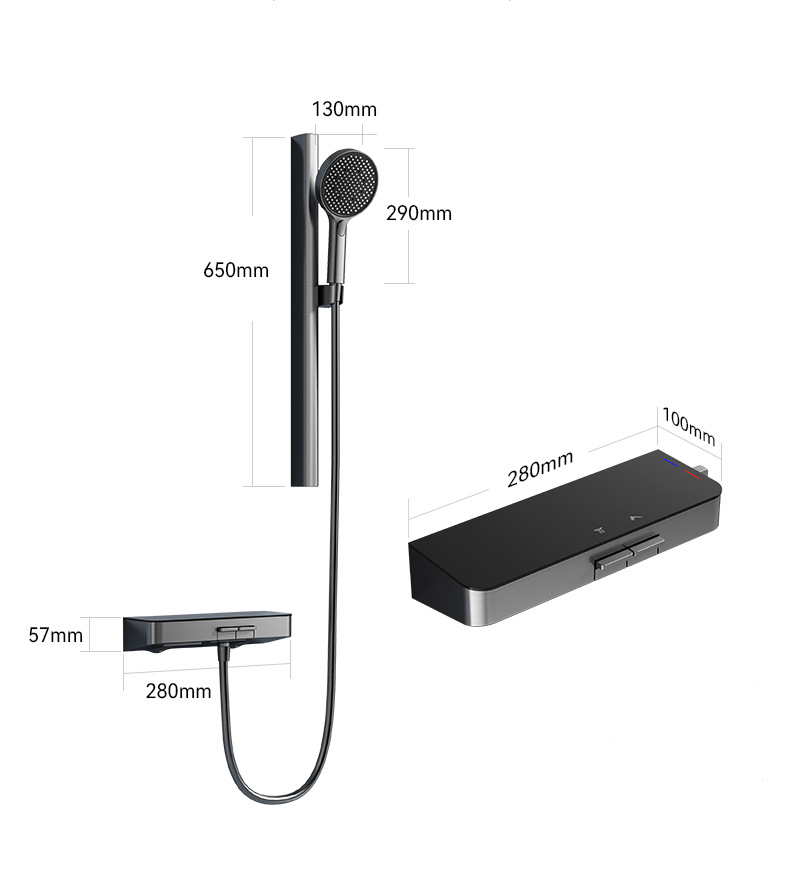Nueva pistola de color crema gris simple ducha juego de ducha botón grifo de bañera dividida mesa de almacenamiento barra elevadora