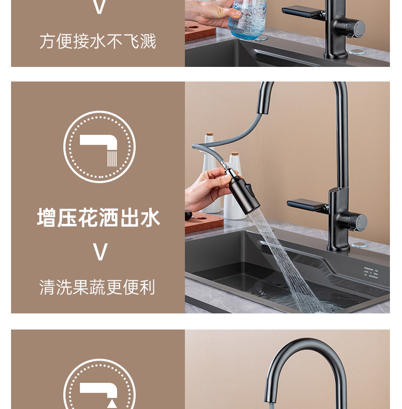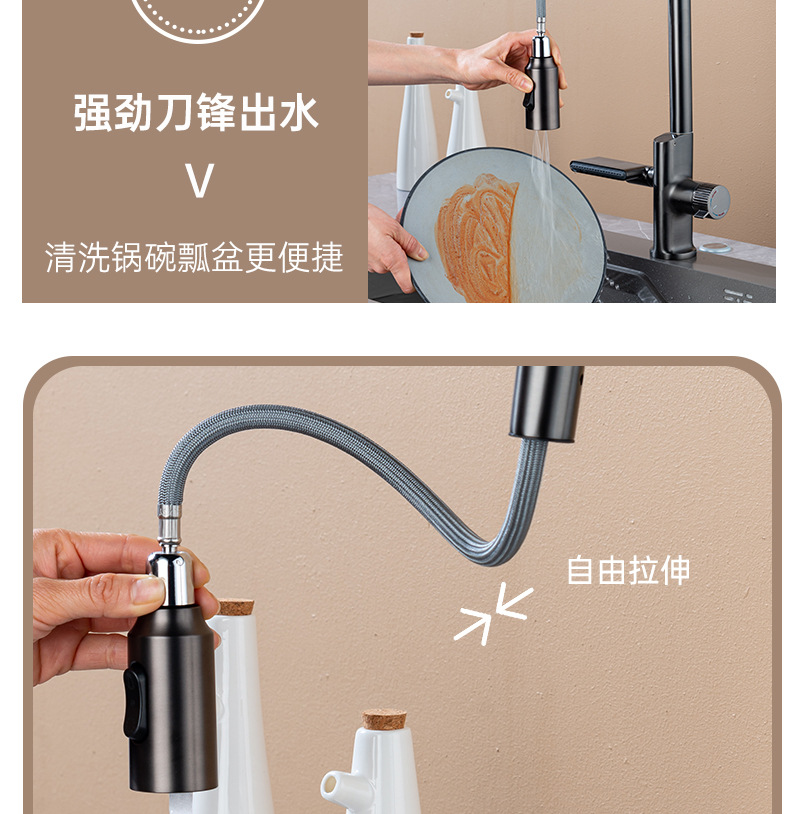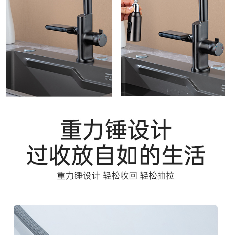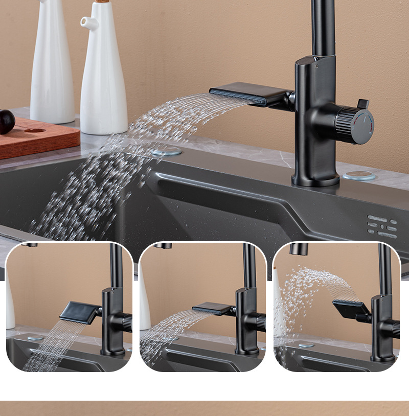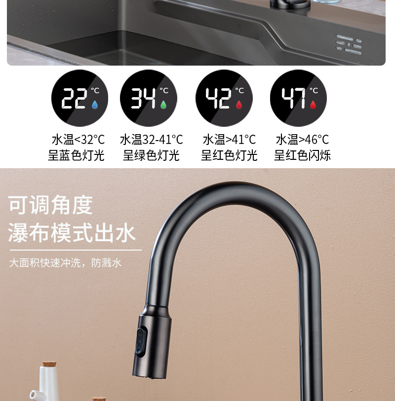 Pistola de cobre gris pantalla digital cocina pull-out grifo de agua caliente y fría fregadero del hogar bajo lavabo grifo