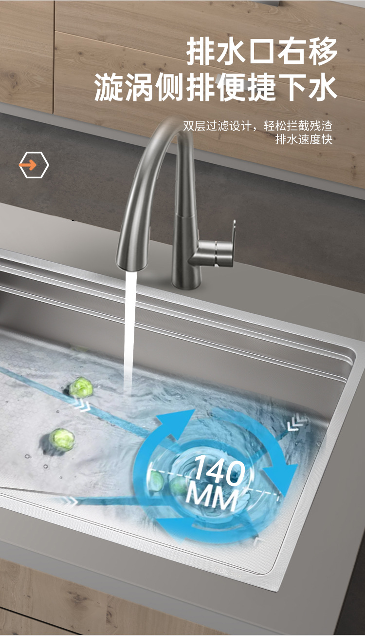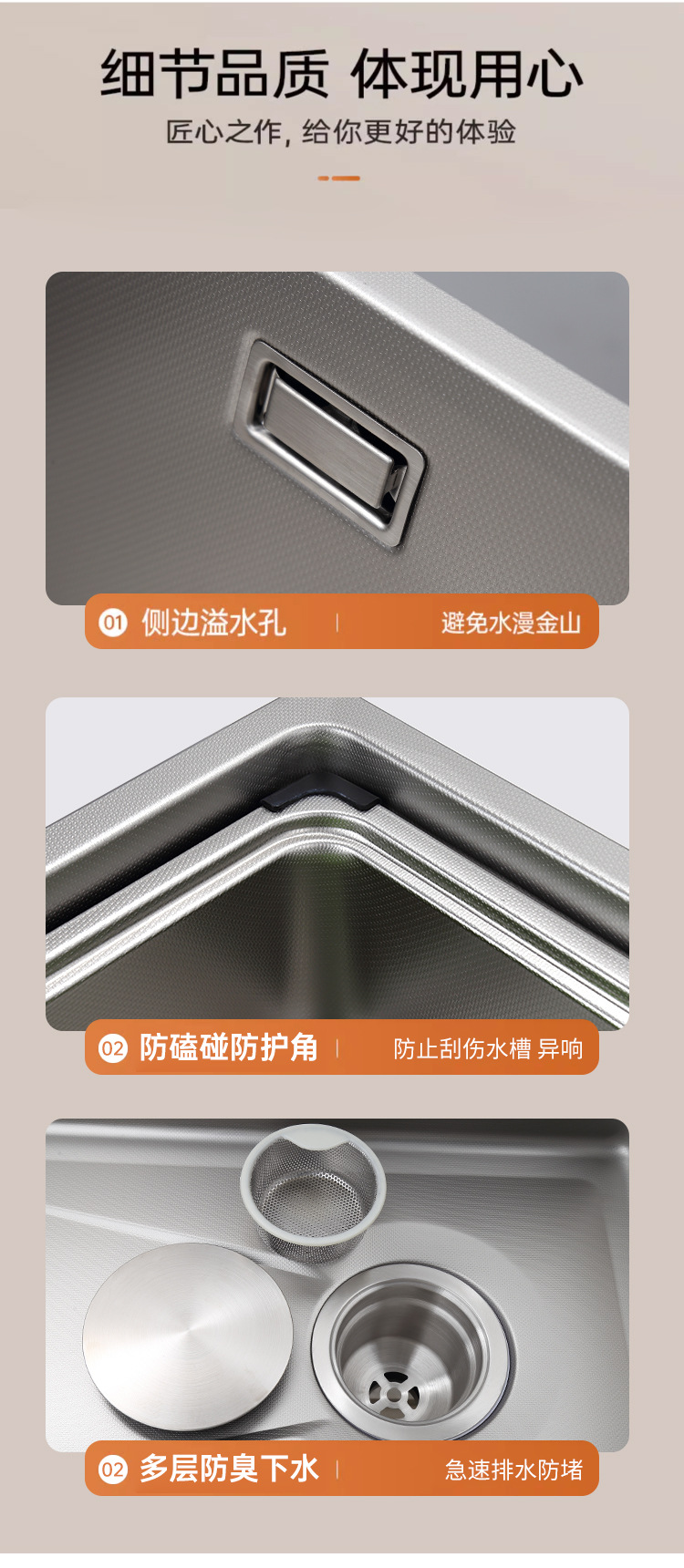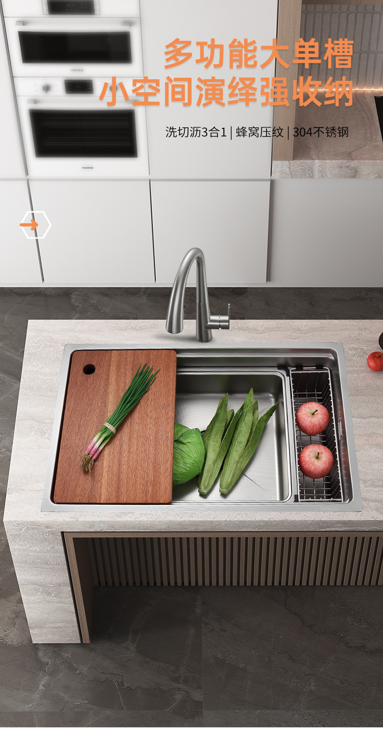 Fregadero en relieve de grano de arroz uno por uno, fregadero de acero inoxidable SUS304, lavabo grande de una sola ranura, lavabo debajo de la encimera, fregadero de cocina de lado estrecho