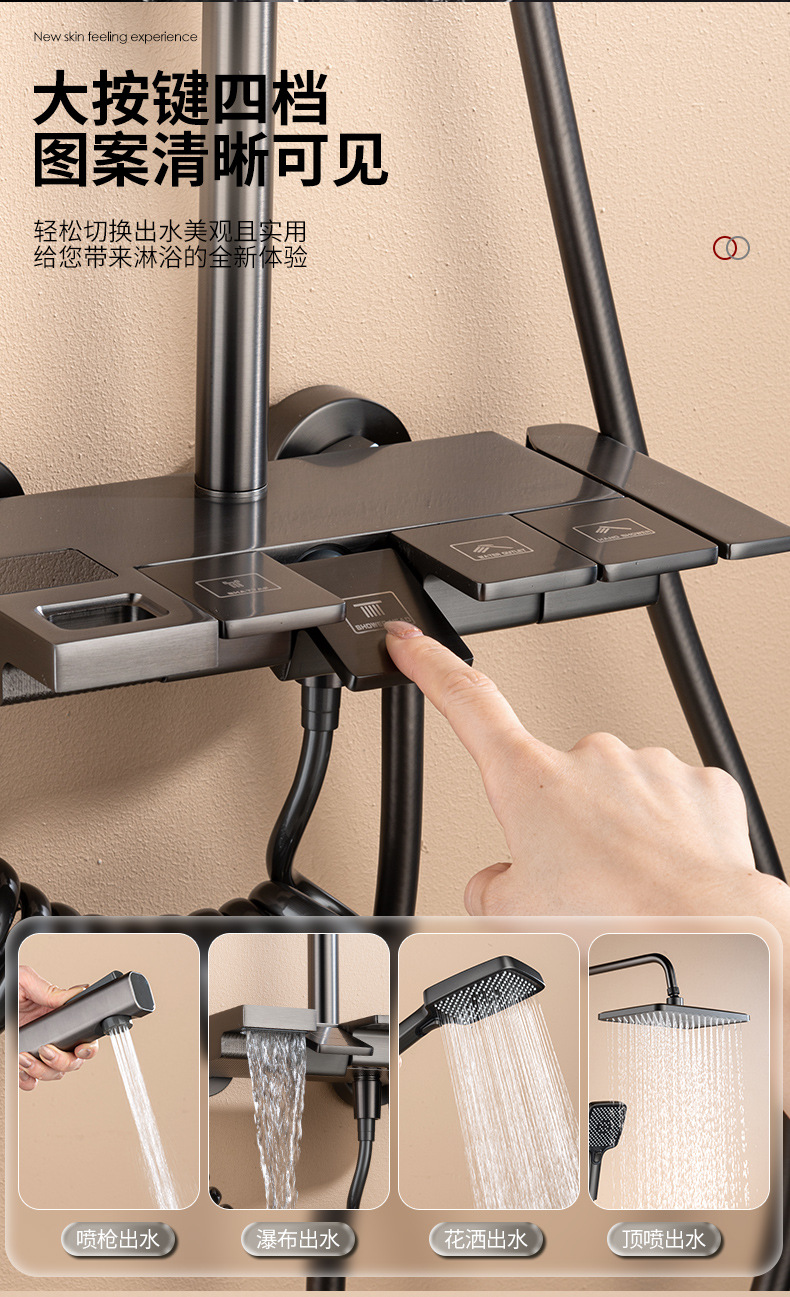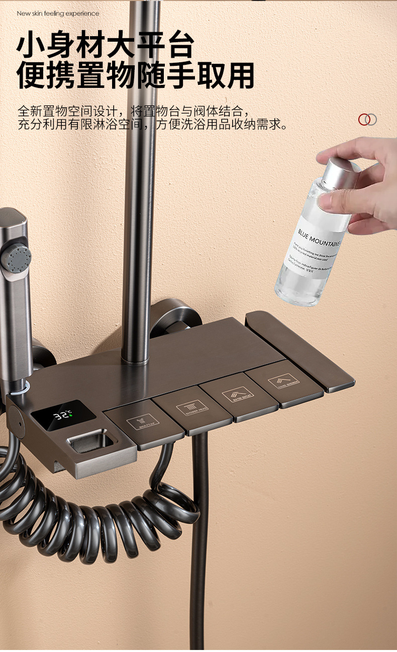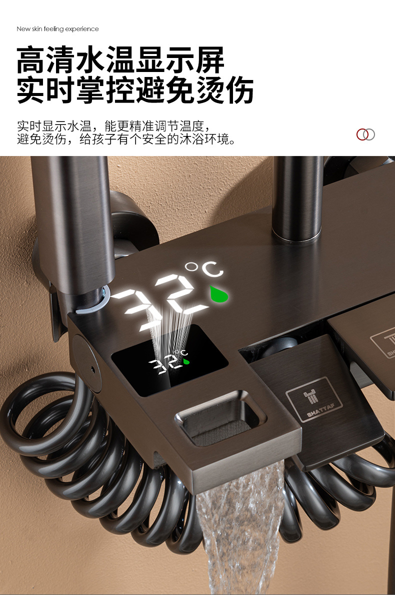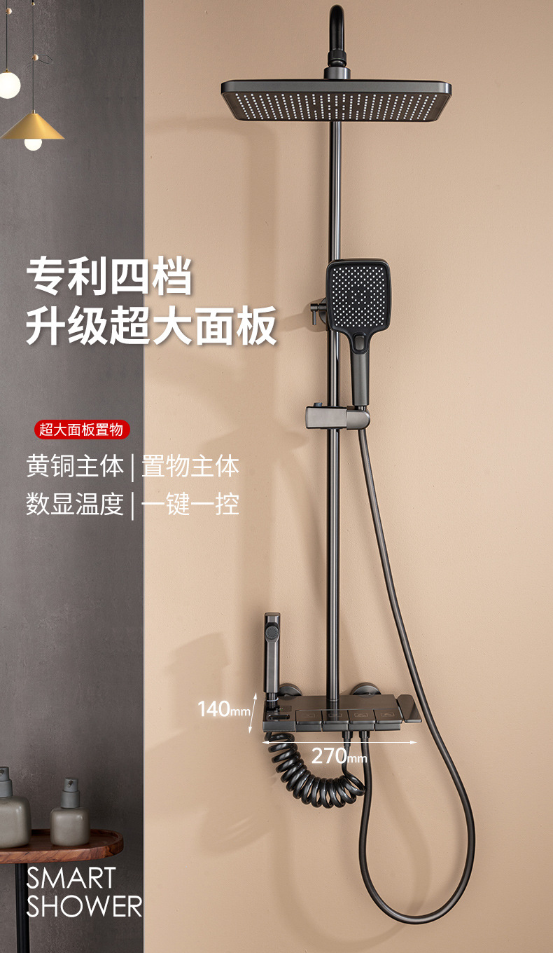 Pantalla digital ducha cabeza traje de cobre hogar Baño pistola gris lluvia presurizado boquilla de Ducha