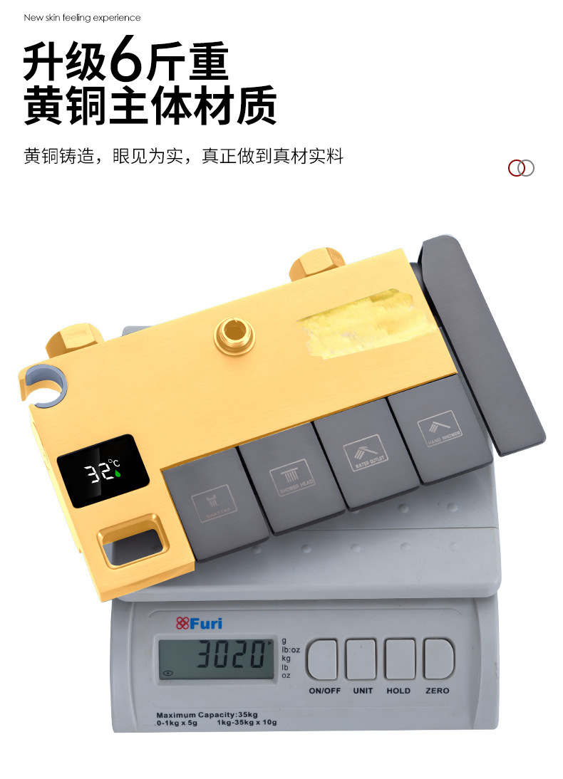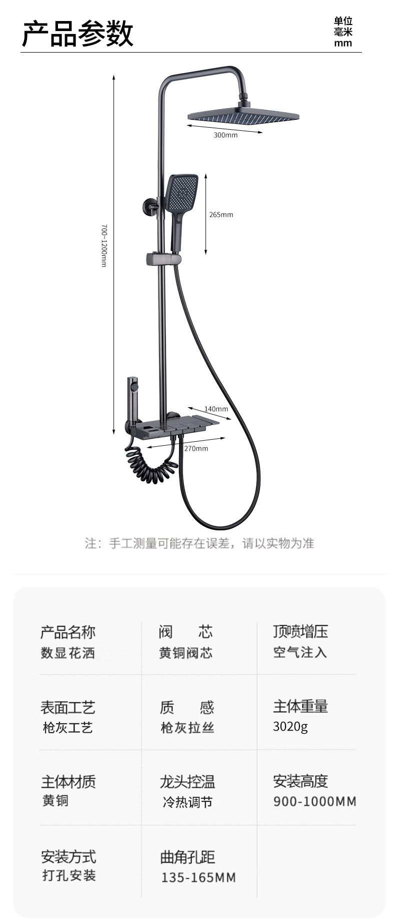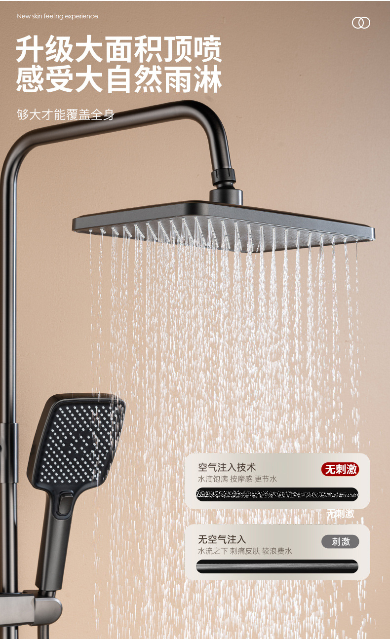 Pantalla digital ducha cabeza traje de cobre hogar Baño pistola gris lluvia presurizado boquilla de Ducha