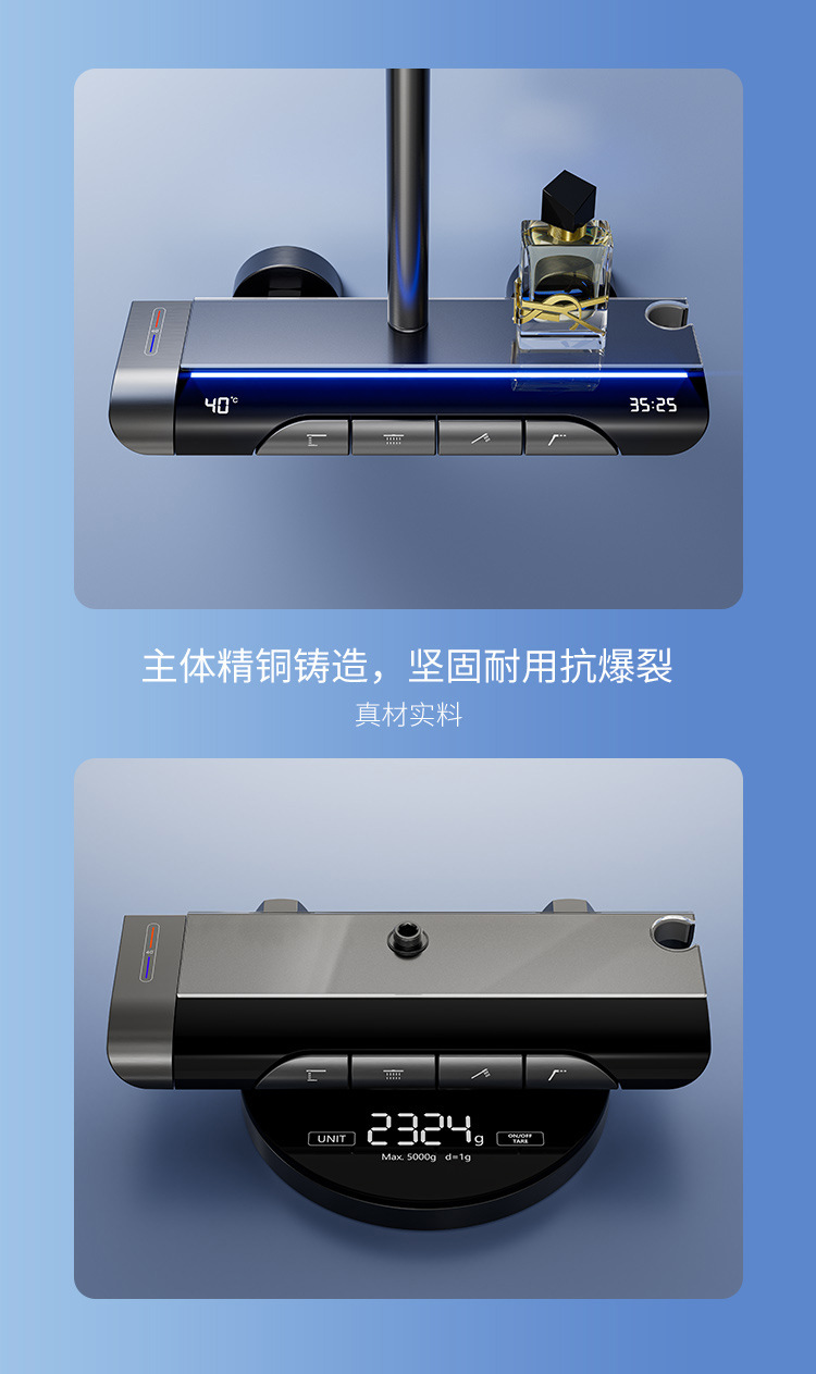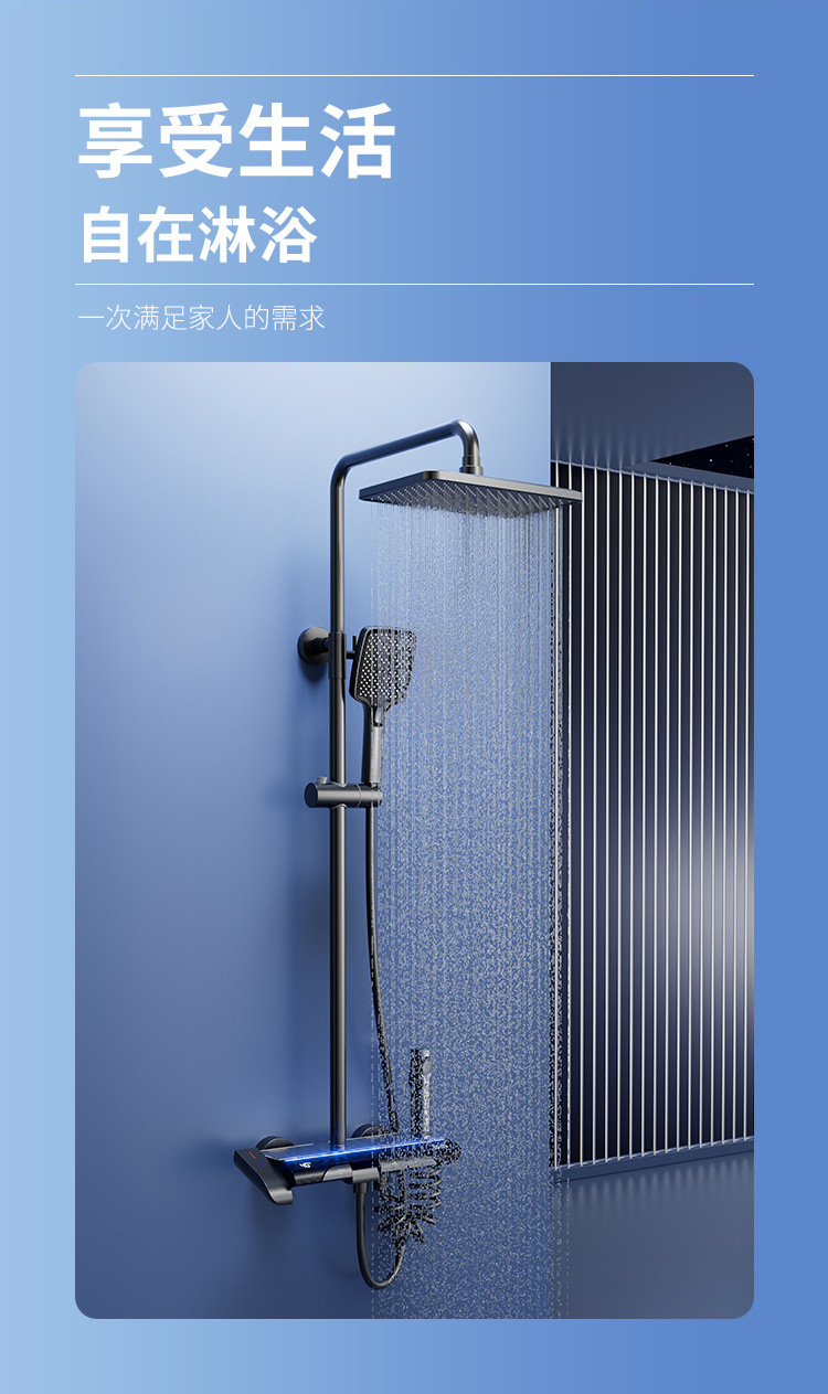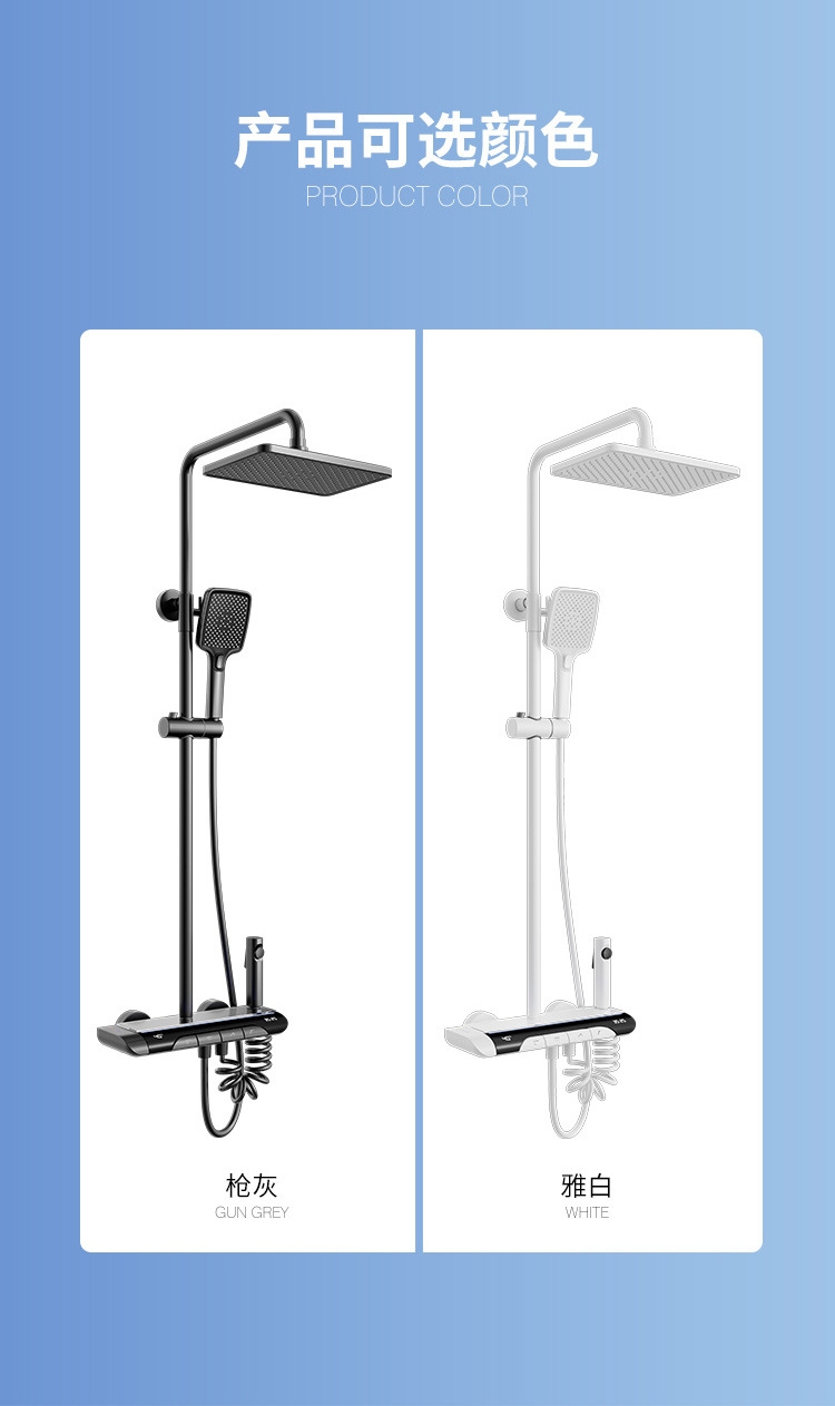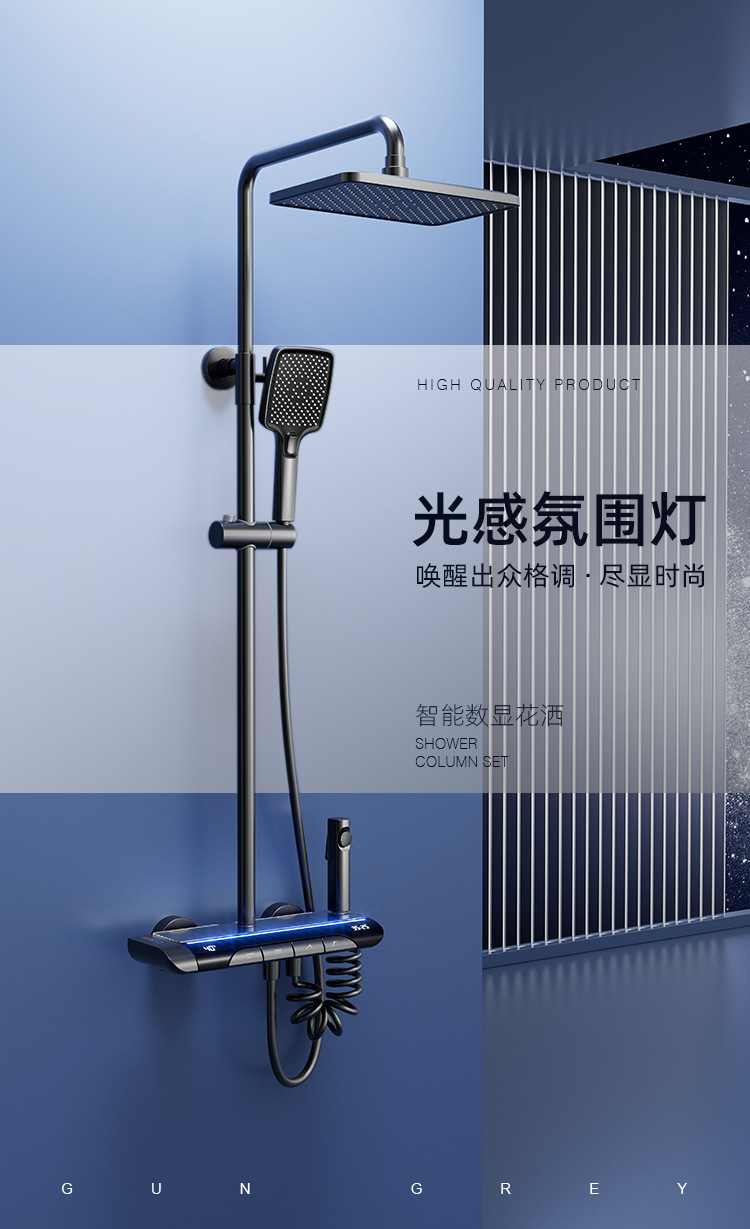 Pistola gris luz ambiental pantalla digital piano botón ducha de baño juego de ducha de latón temperatura constante ducha sobrealimentada juego completo