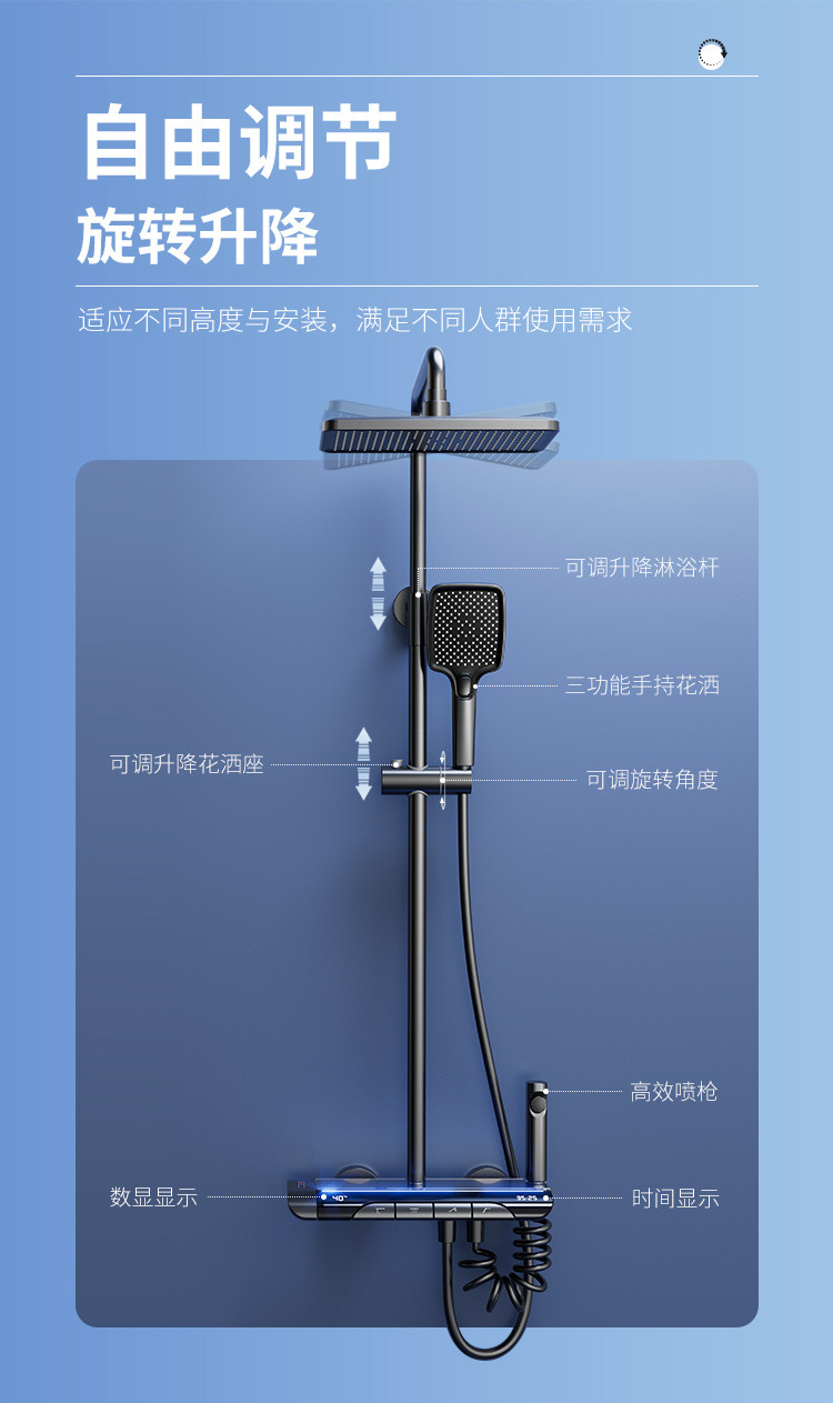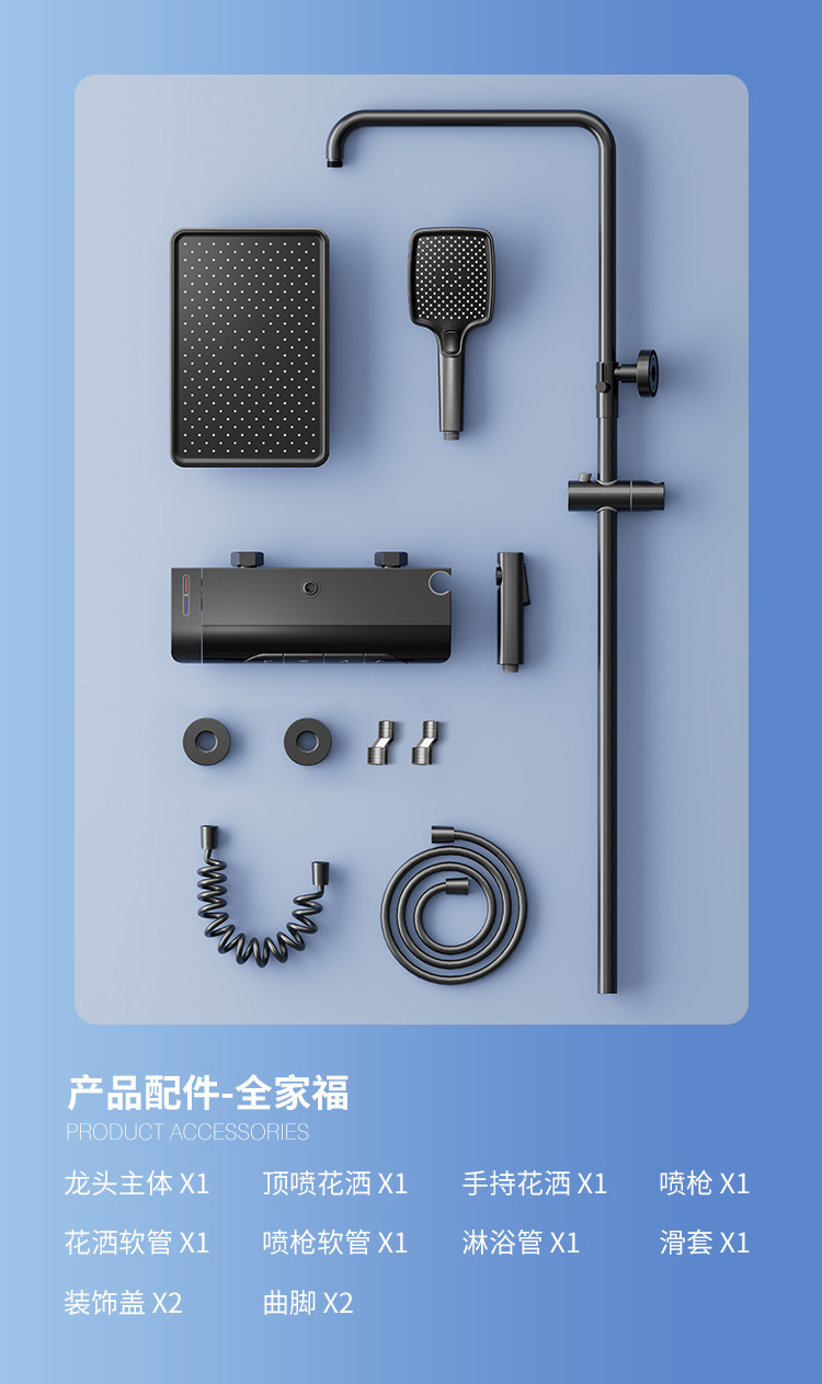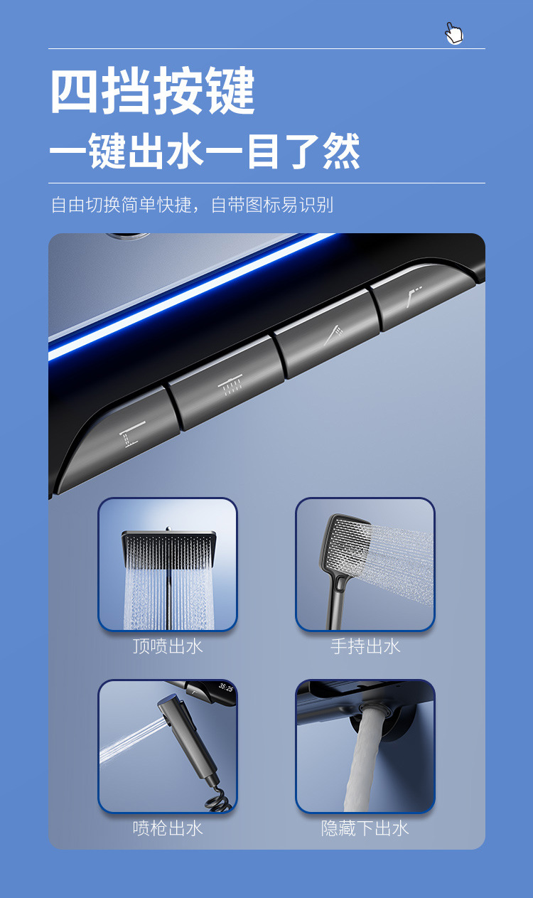 Pistola gris luz ambiental pantalla digital piano botón ducha de baño juego de ducha de latón temperatura constante ducha sobrealimentada juego completo