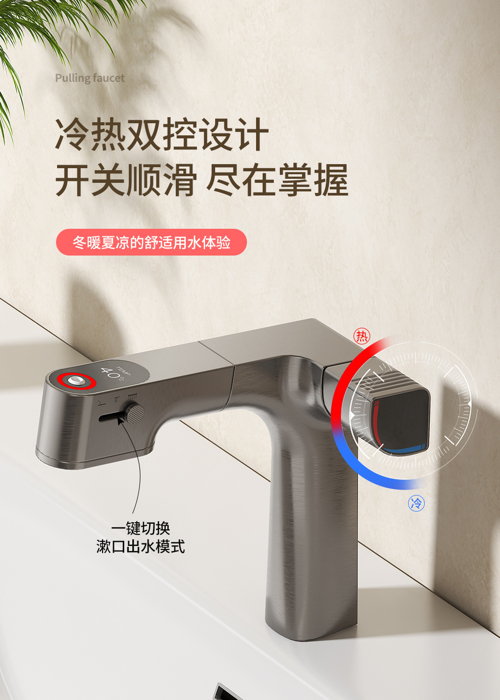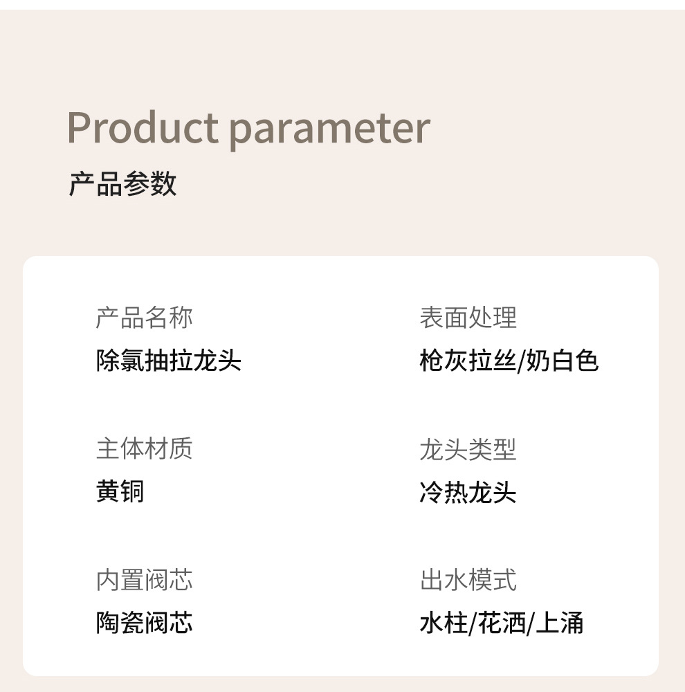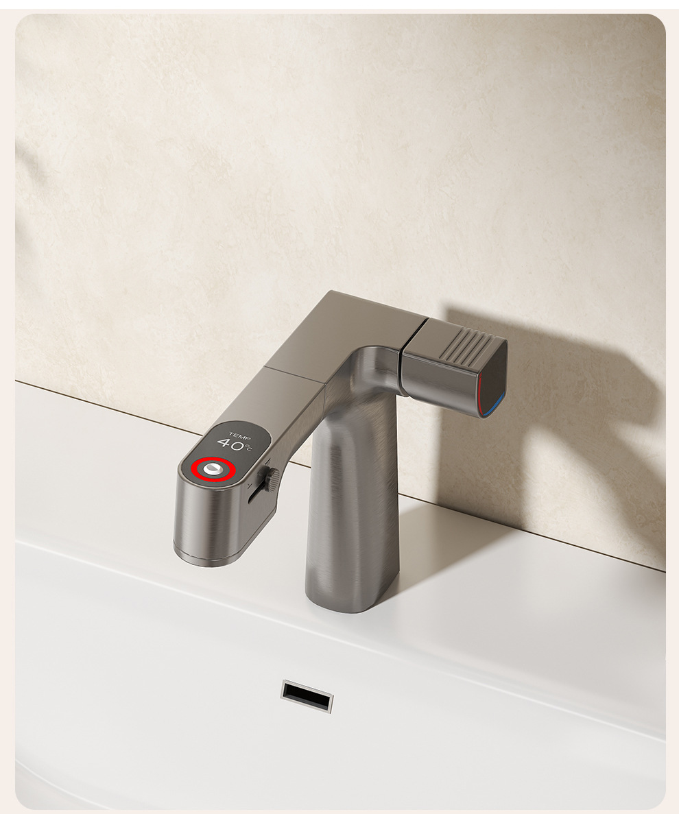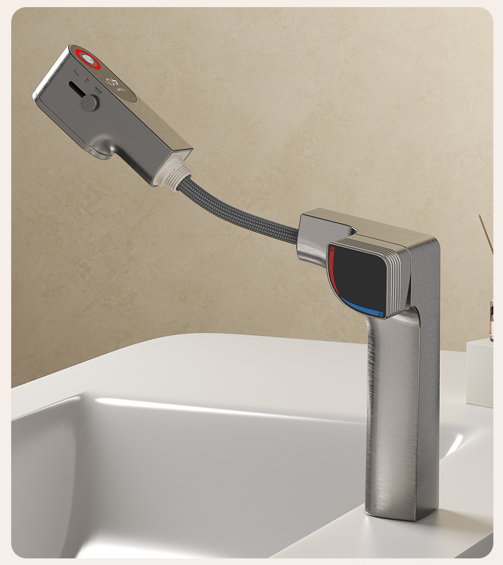 Pistola gris retráctil pull Cuenca del grifo pantalla digital grifo de agua caliente y fría cuidado de la piel filtro de eliminación de cloro núcleo de crema de cobre blanco