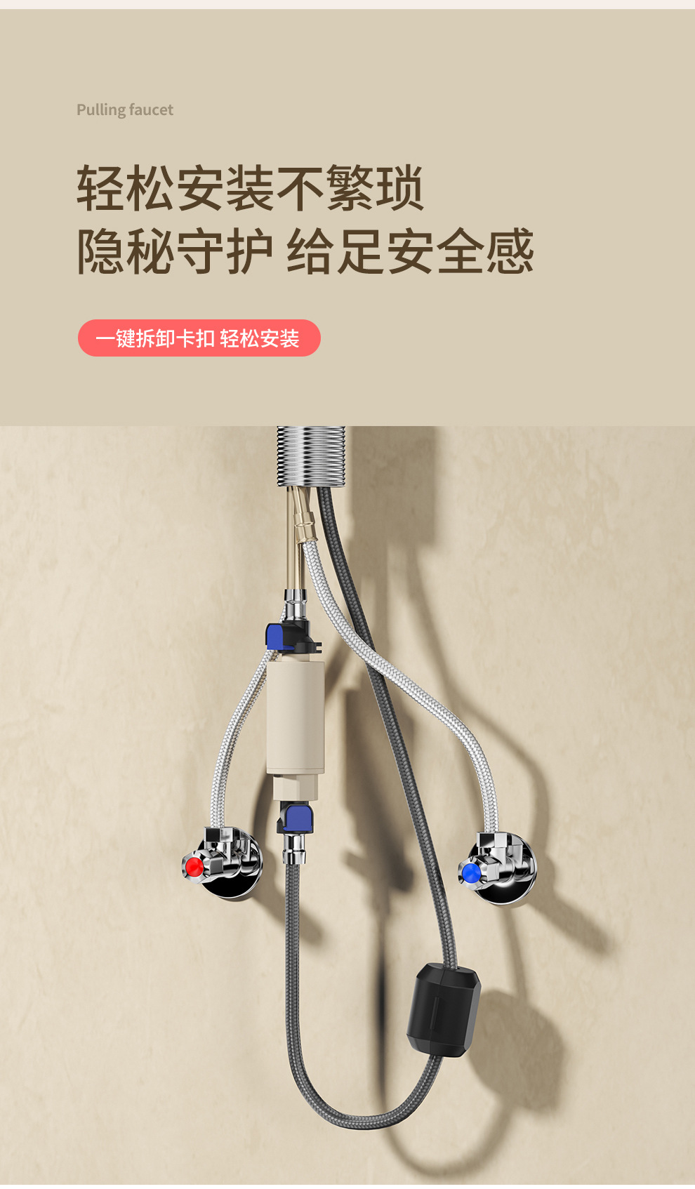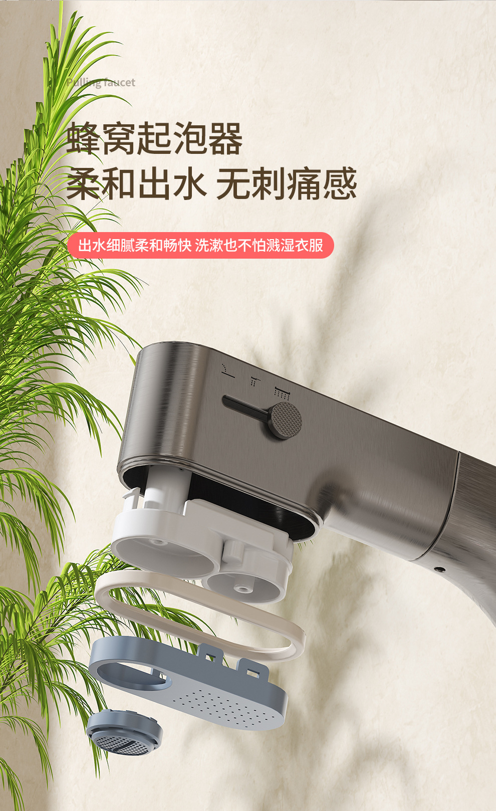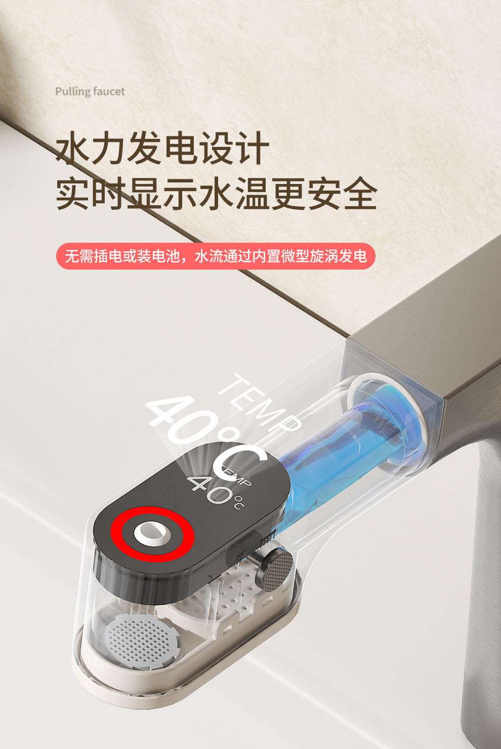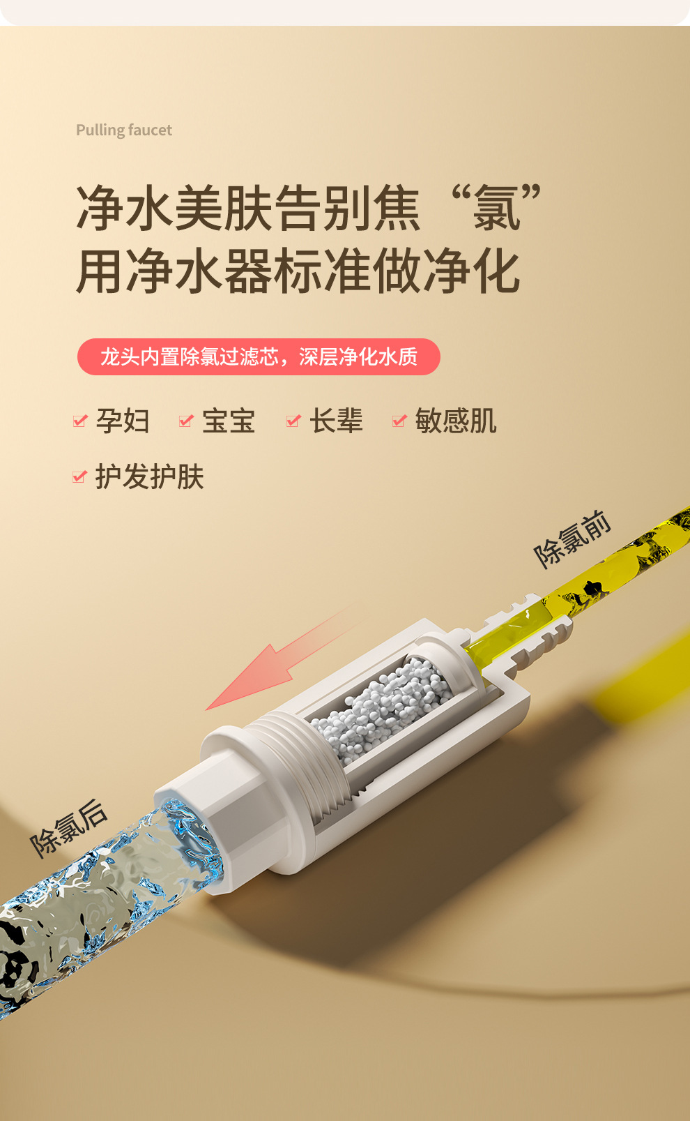 Pistola gris retráctil pull Cuenca del grifo pantalla digital grifo de agua caliente y fría cuidado de la piel filtro de eliminación de cloro núcleo de crema de cobre blanco